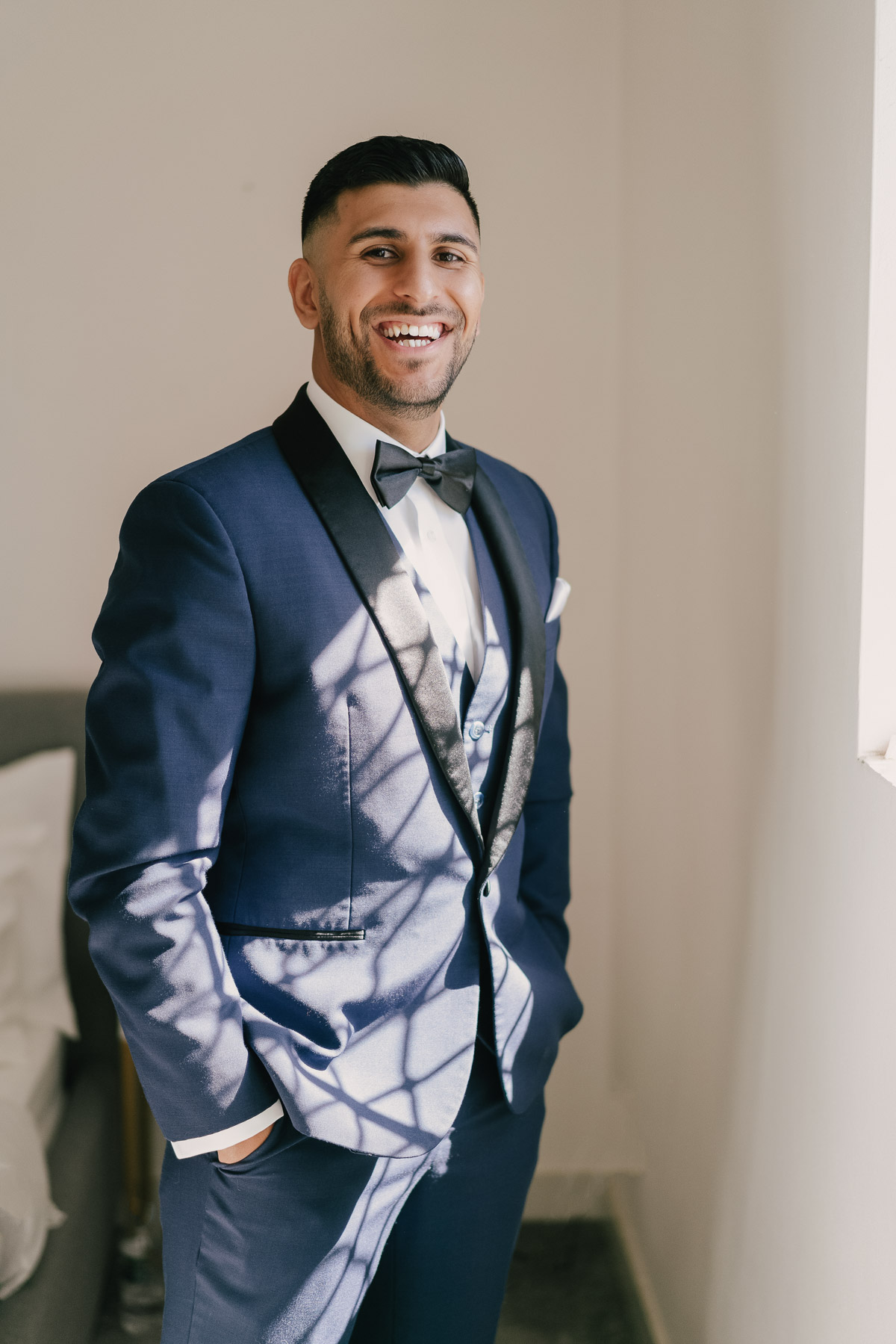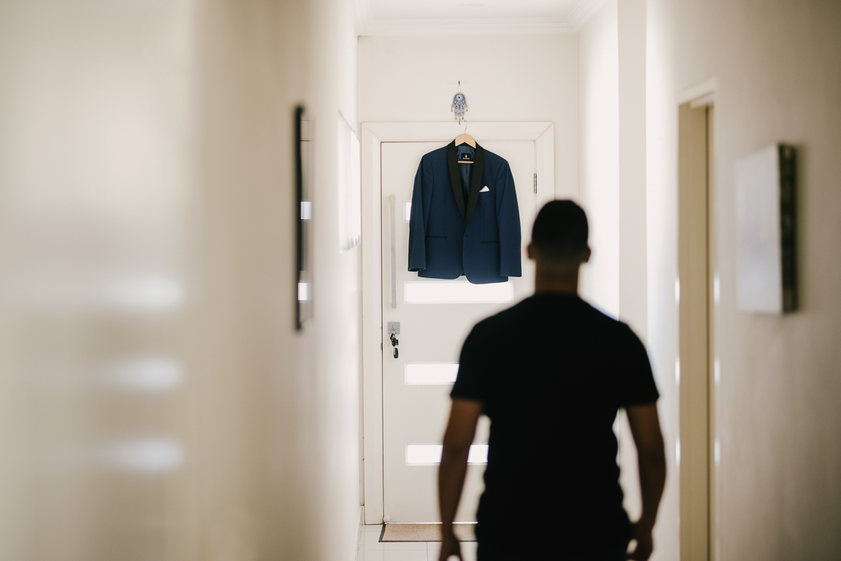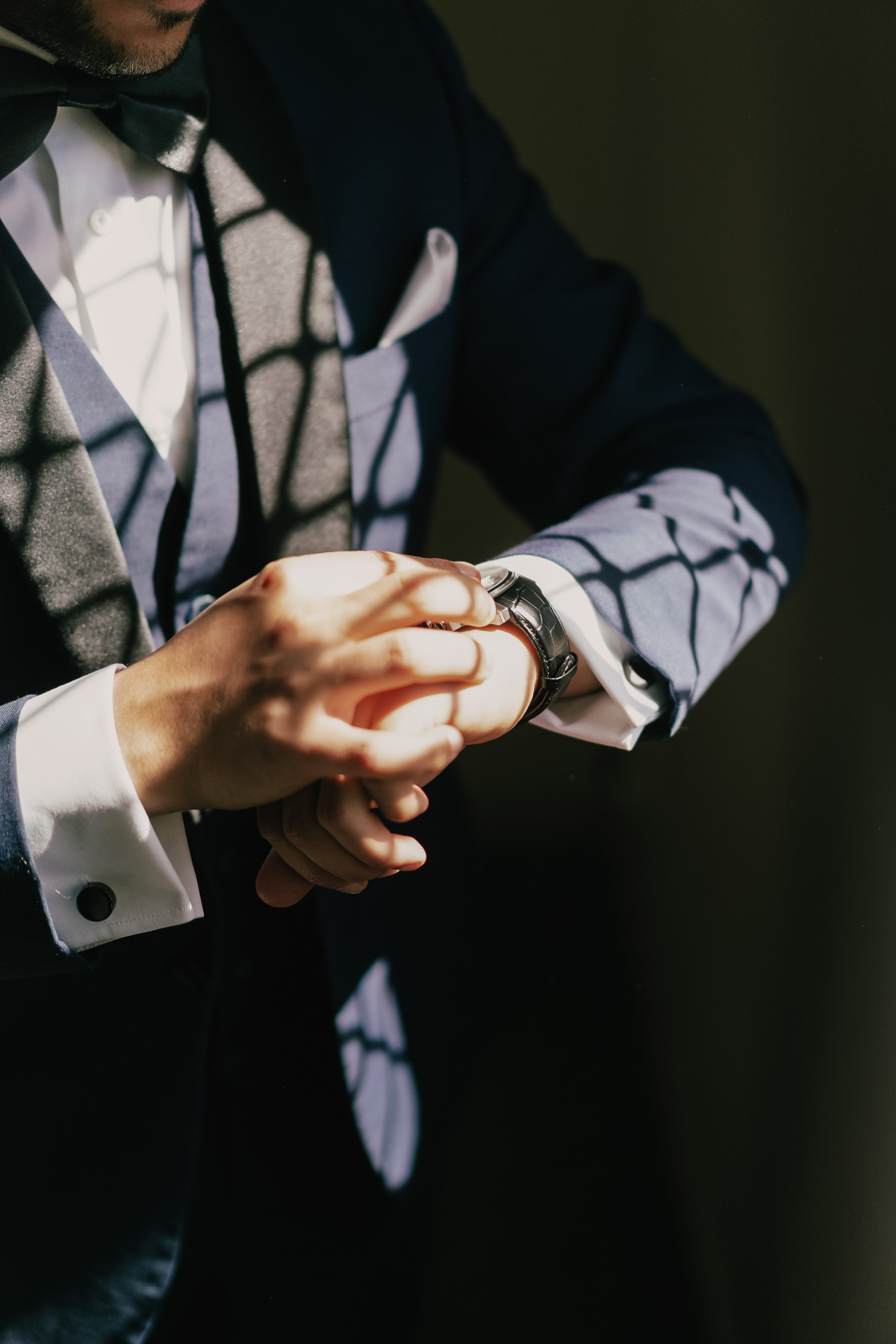 We love capturing the right light and shadow when it sets the right mood. The groom merely checks his watch, but the image feels right.