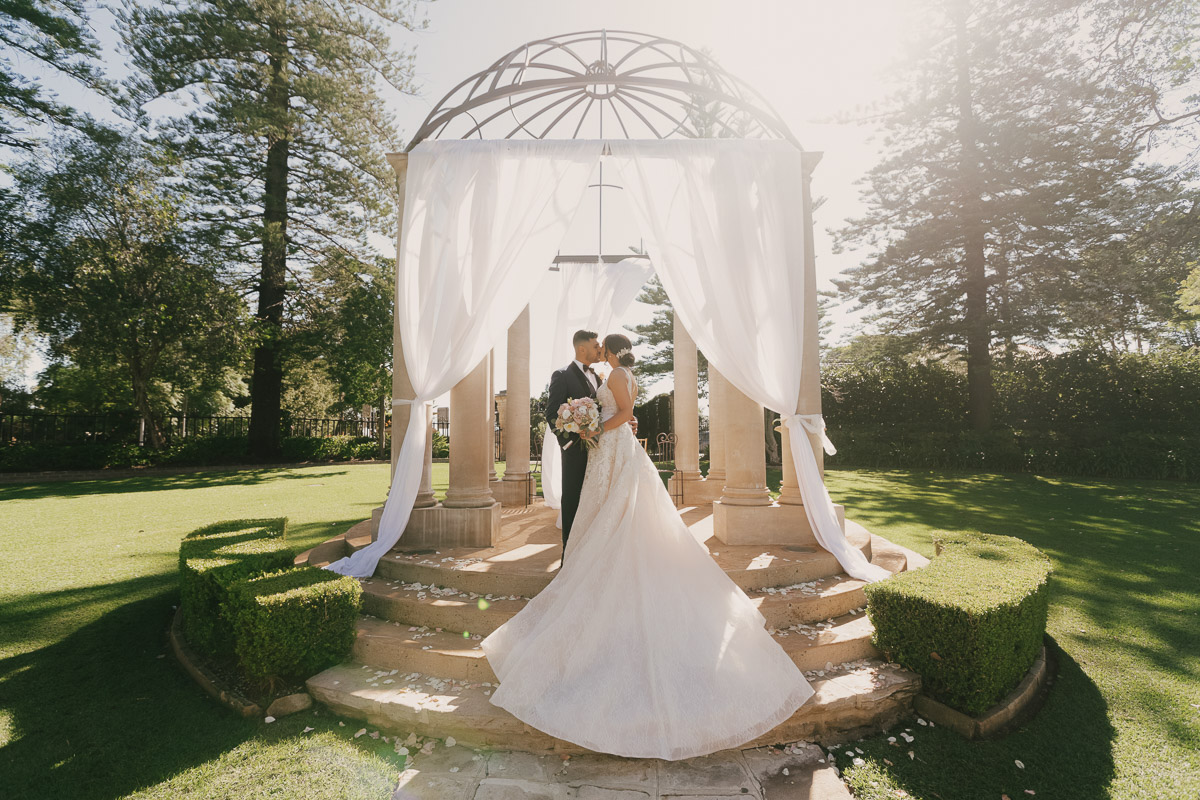 This gazebo shot may be our favourite. The light, the symmetry, the feeling of nature, and the happy the couple themselves.