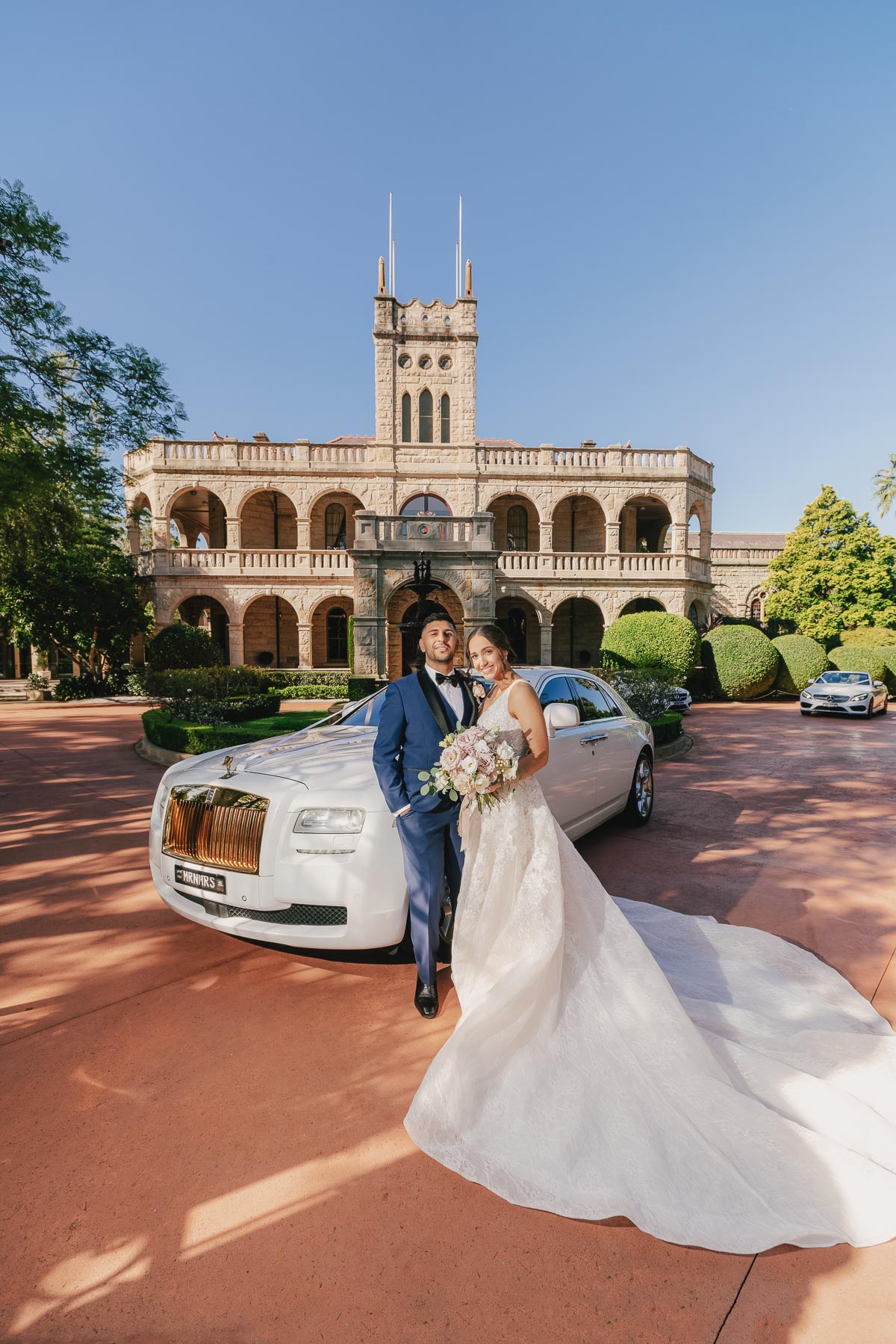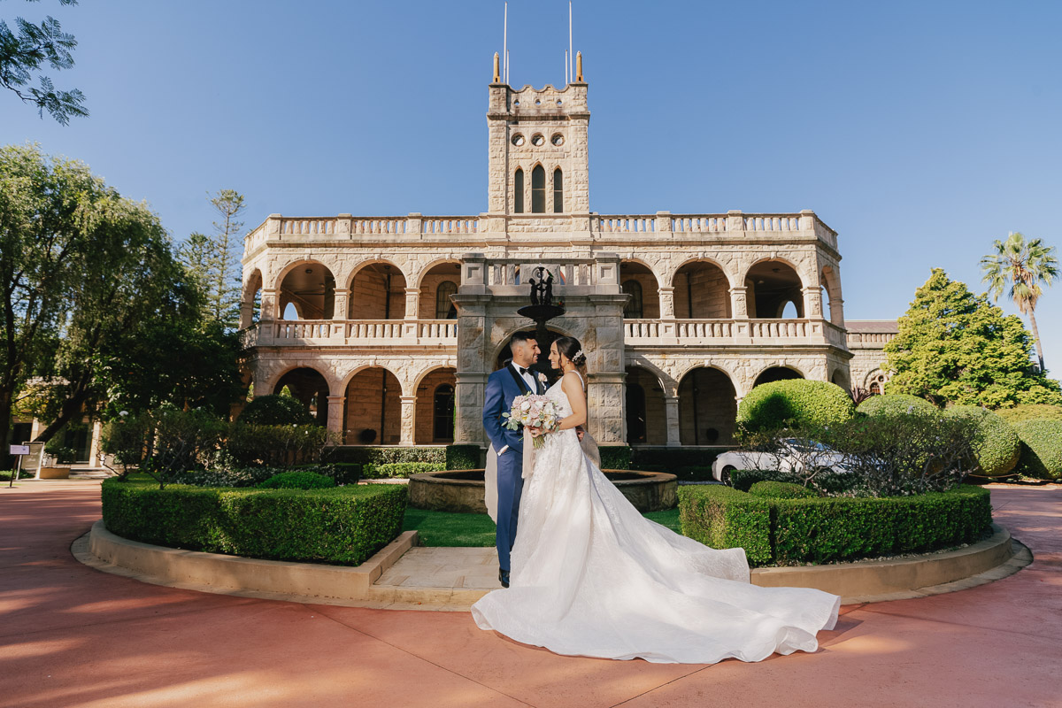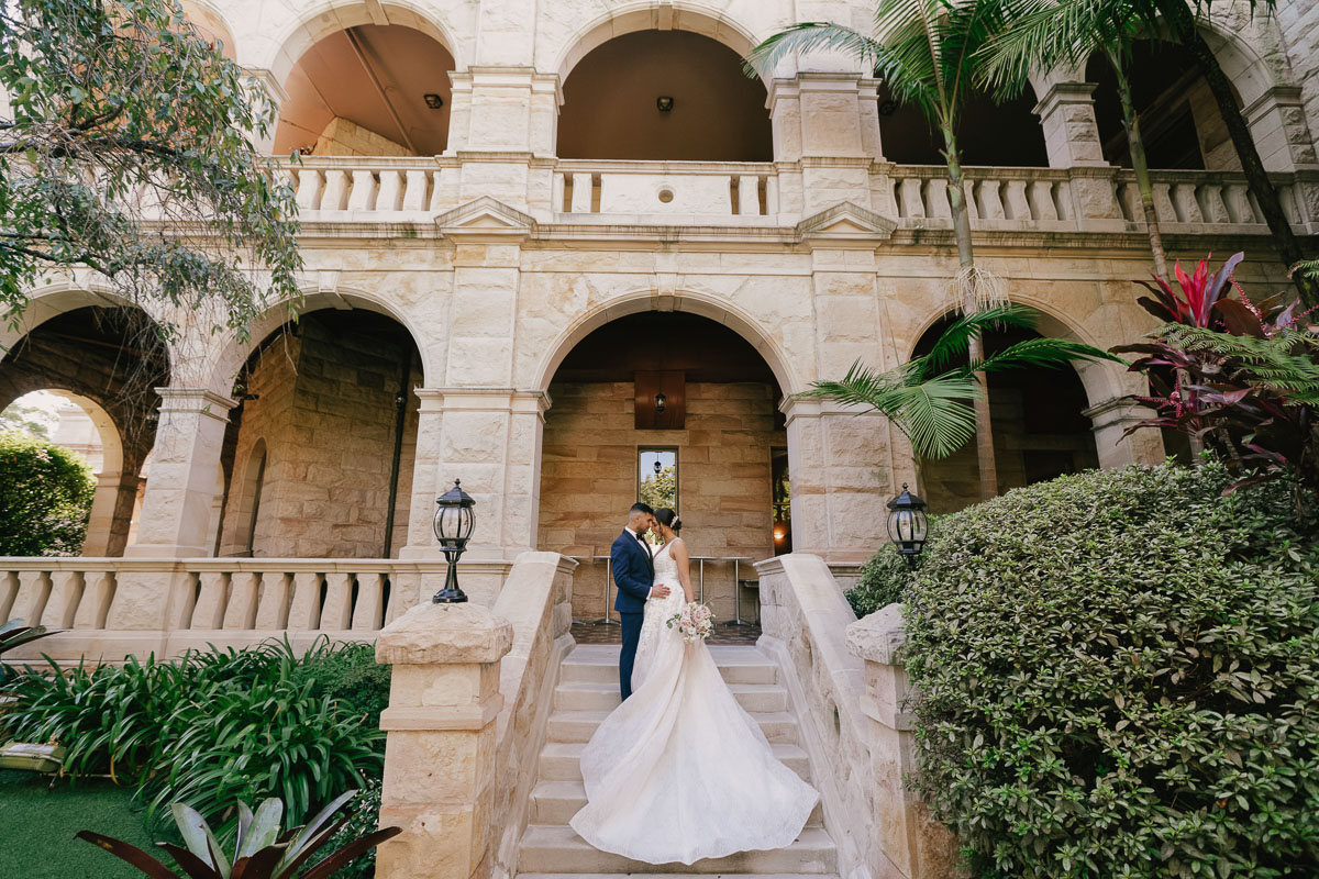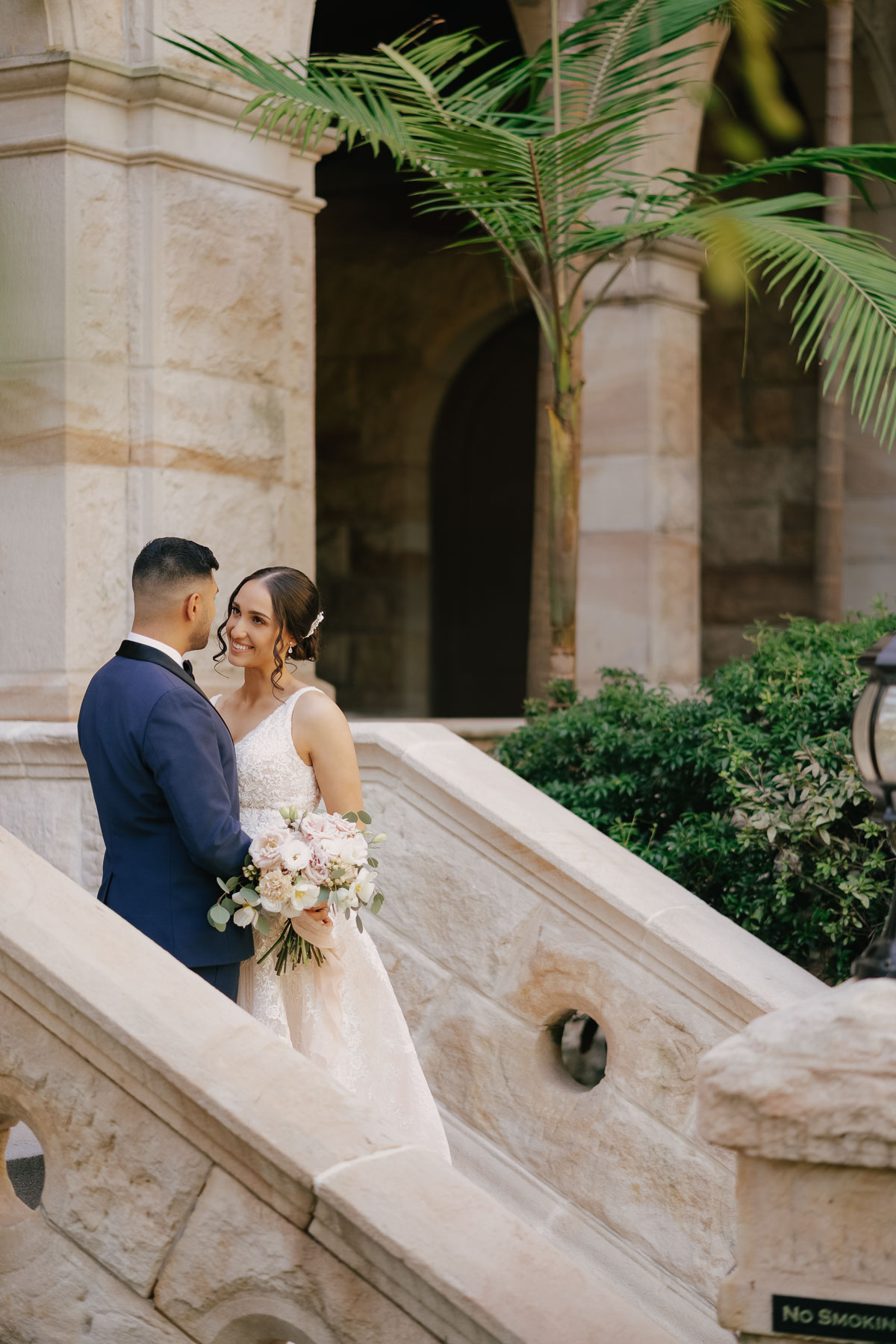 The classic stone buildings look magnificent. Having a great background helps when taking these wedding photos. And the bride and groom look so great.