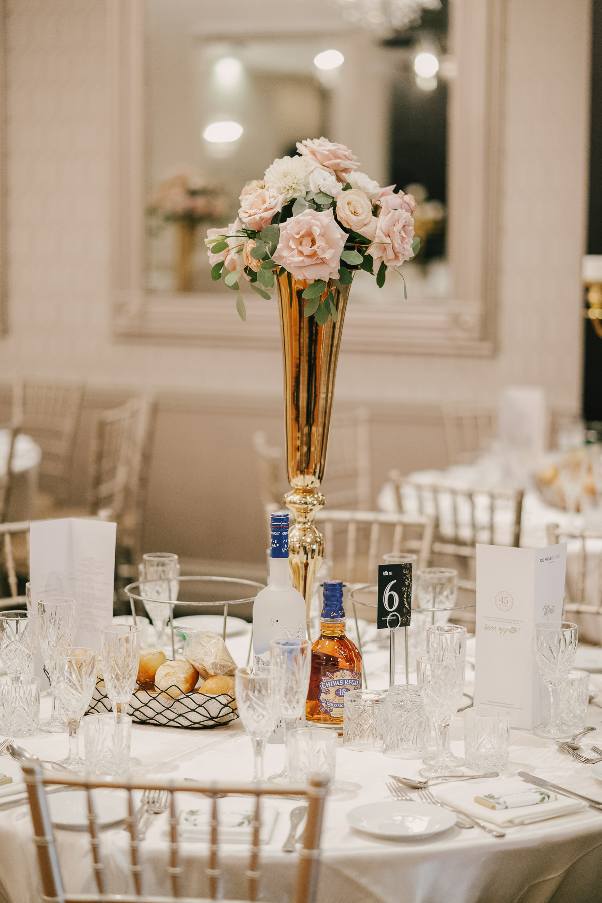 An exquisite reception hall, chandeliers, crystal, gilt vases… Very fine fairy tale décor.