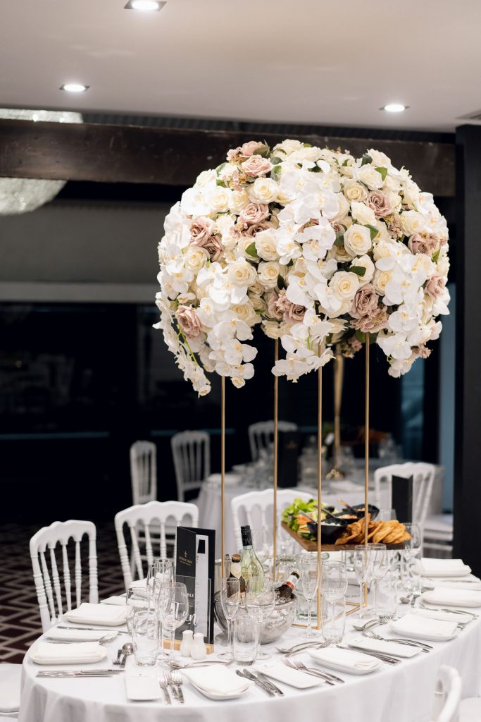 What a reception! Such a pure soft, white. From the flower arrangements to the tablecloths, so exquisite!