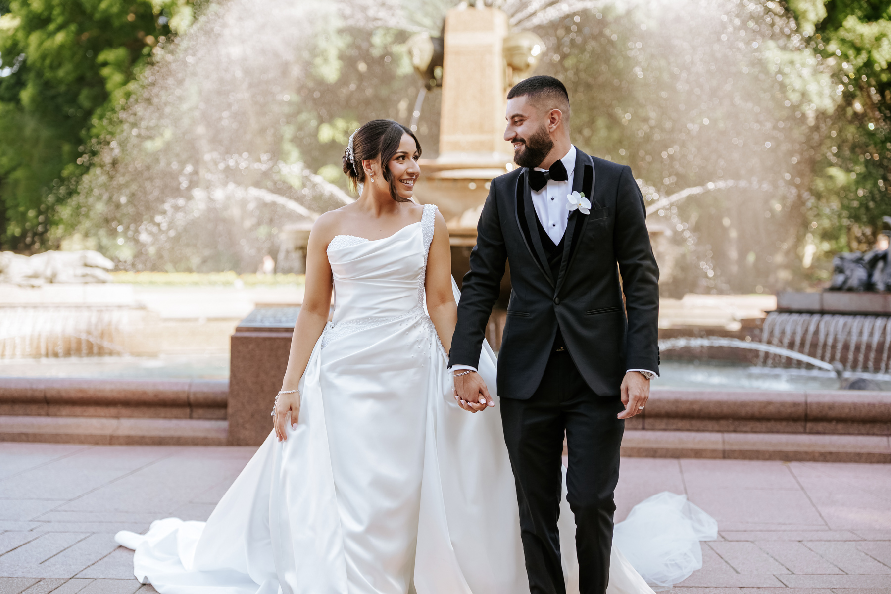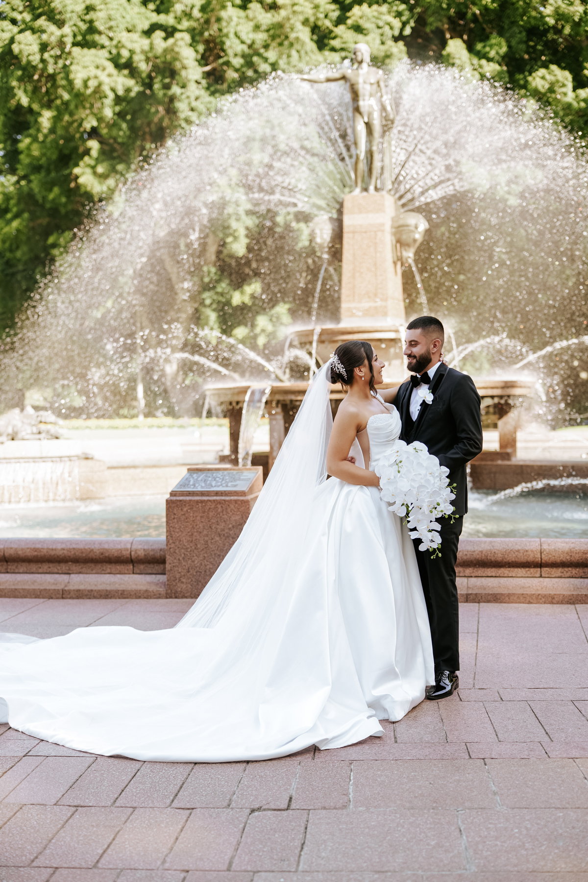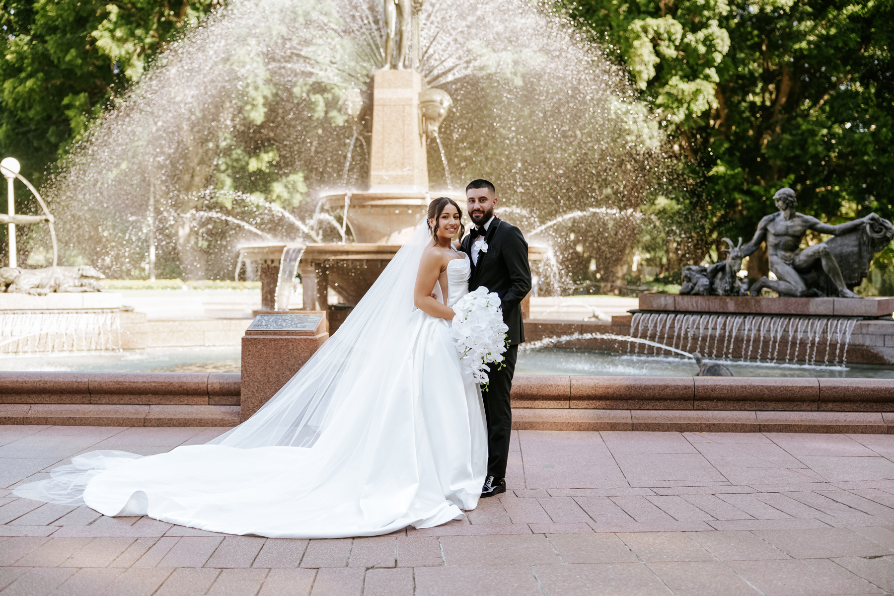 Outside now. There should be more wedding photos out there that feature fountains.