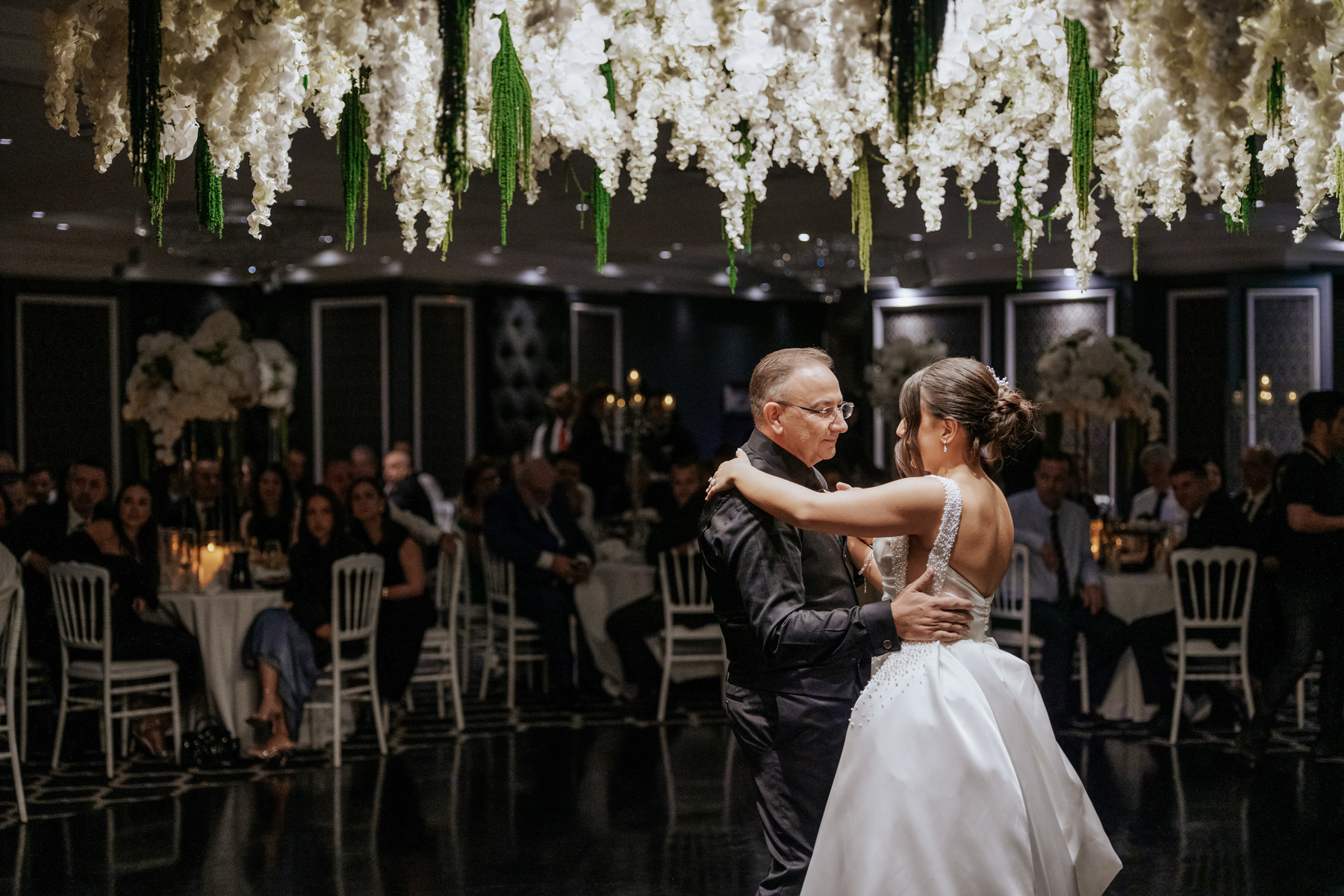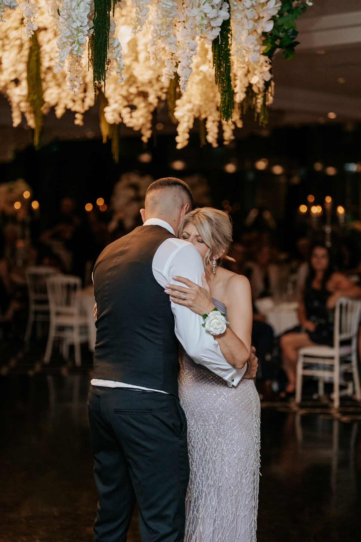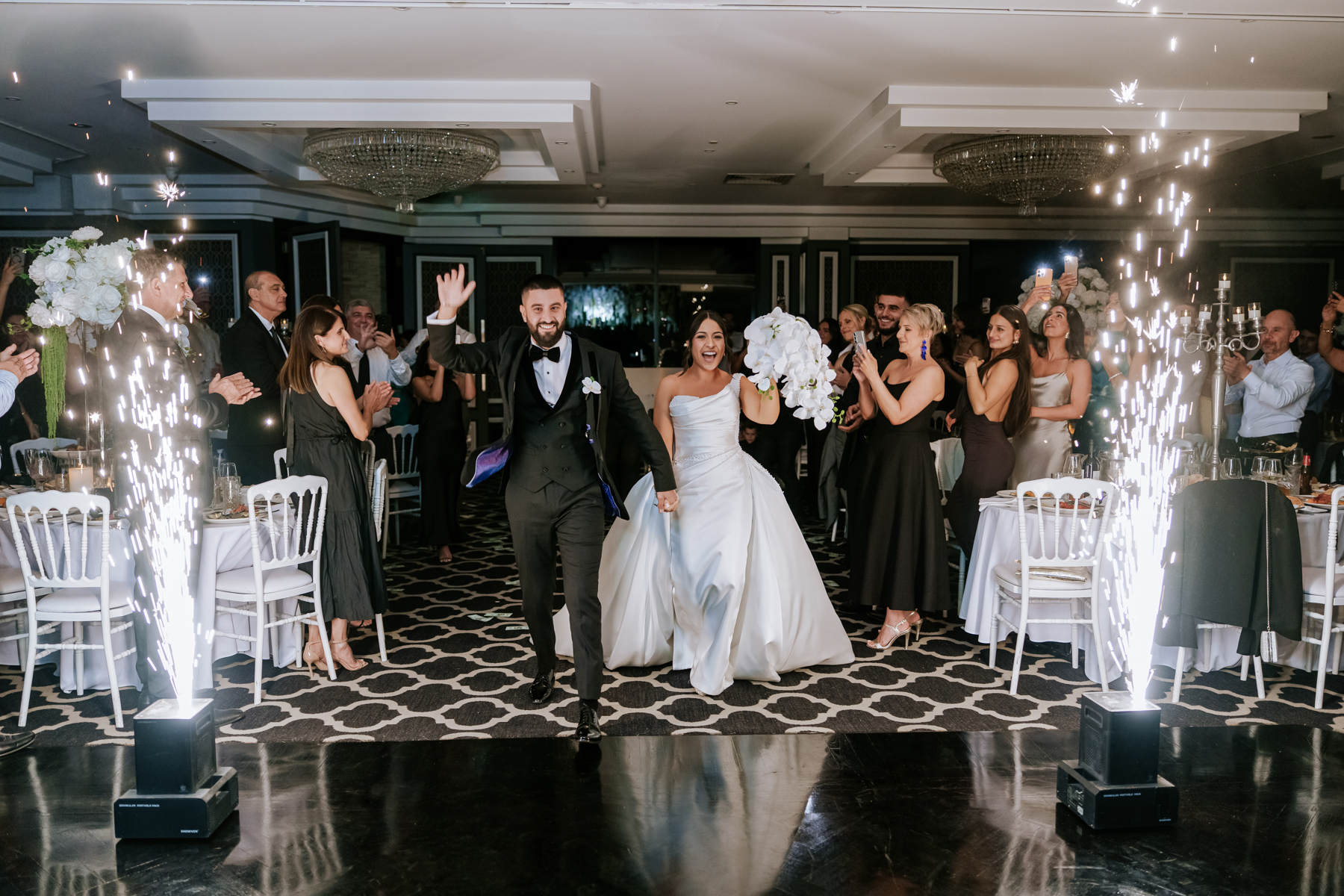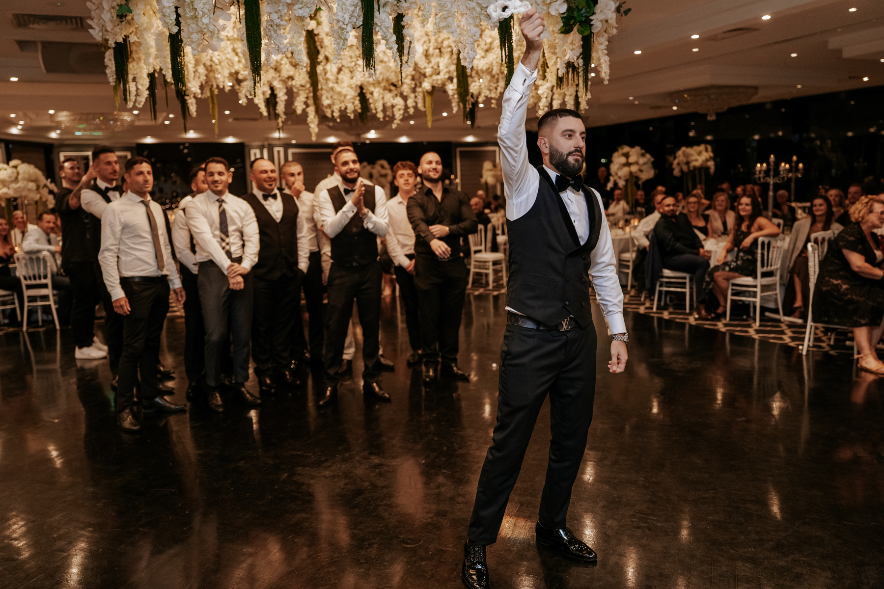 Inside the Chateau Reale Lounge at Doltone House, Sylvania Waters for the reception. Those flower arrangements on the ceiling and head table were incredible.