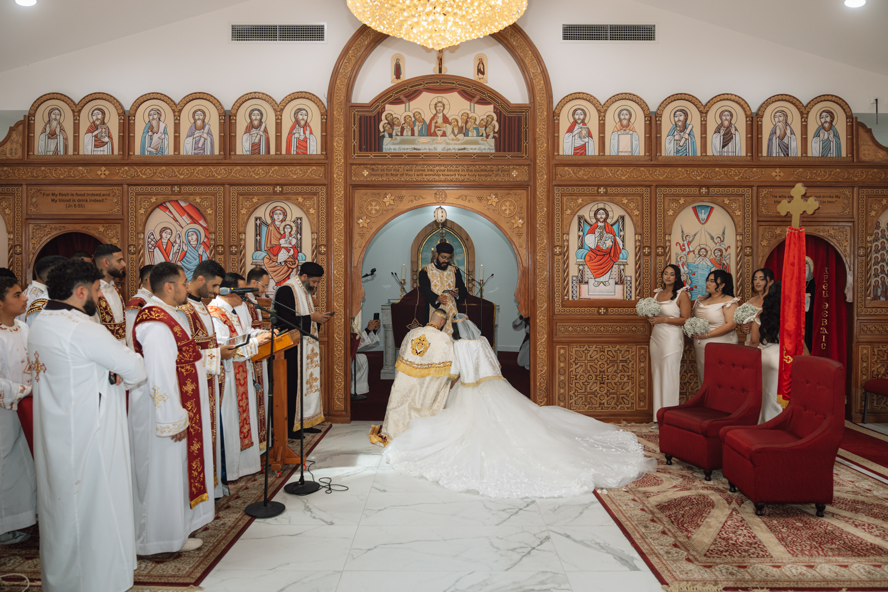 Inside St Abraam Coptic Orthodox Church. Such a bright yet warm atmosphere with the classic wooden architecture. It’s a pleasure to do wedding photography in such fine surroundings.