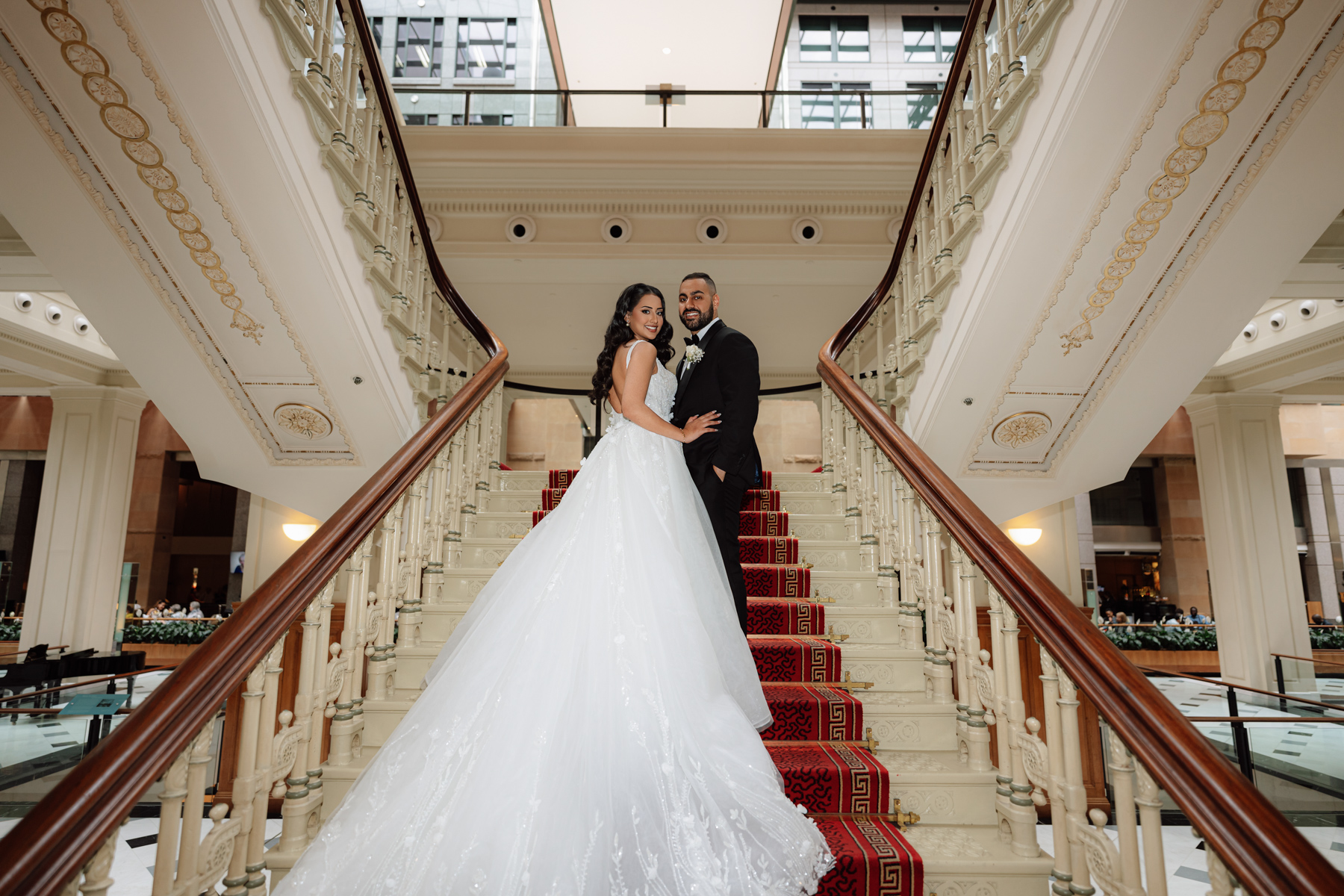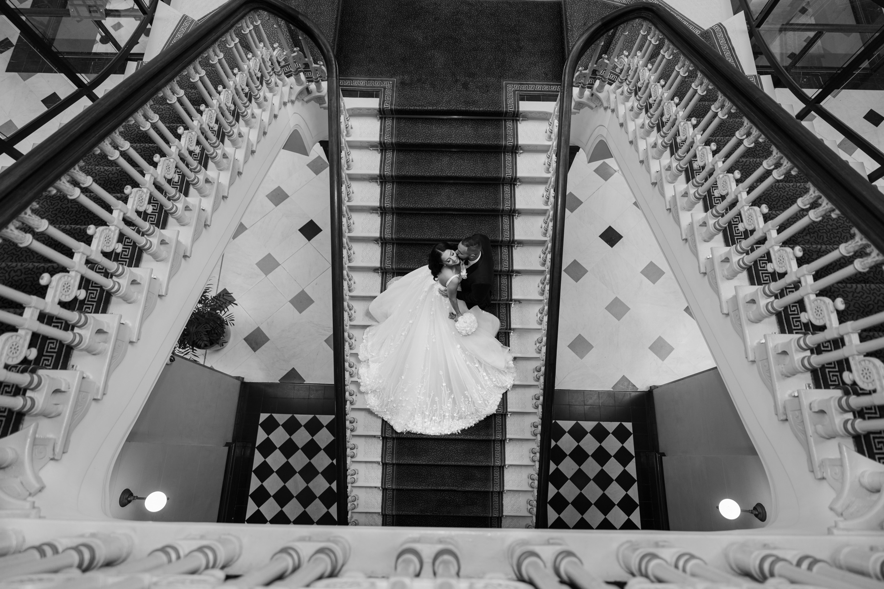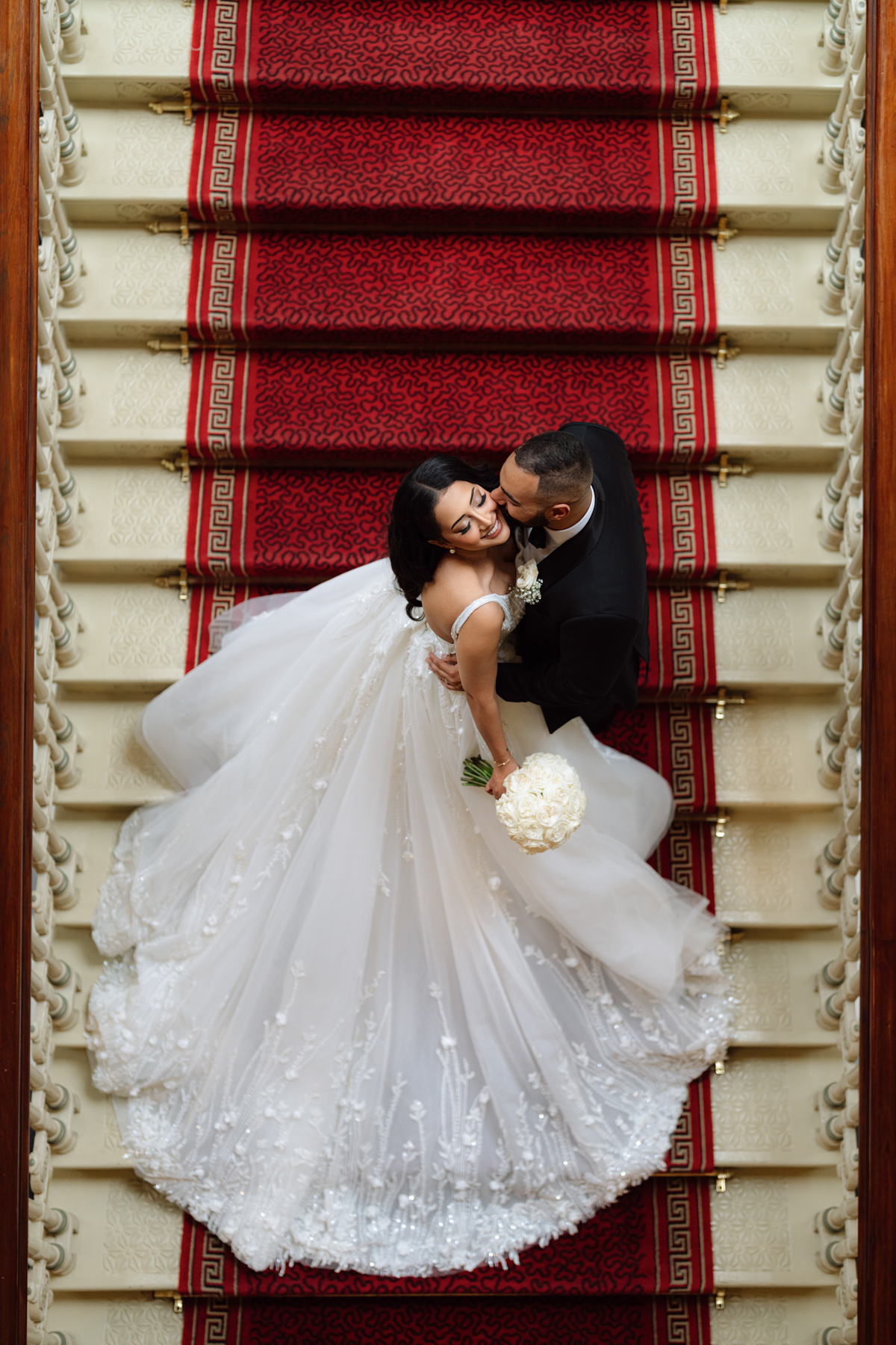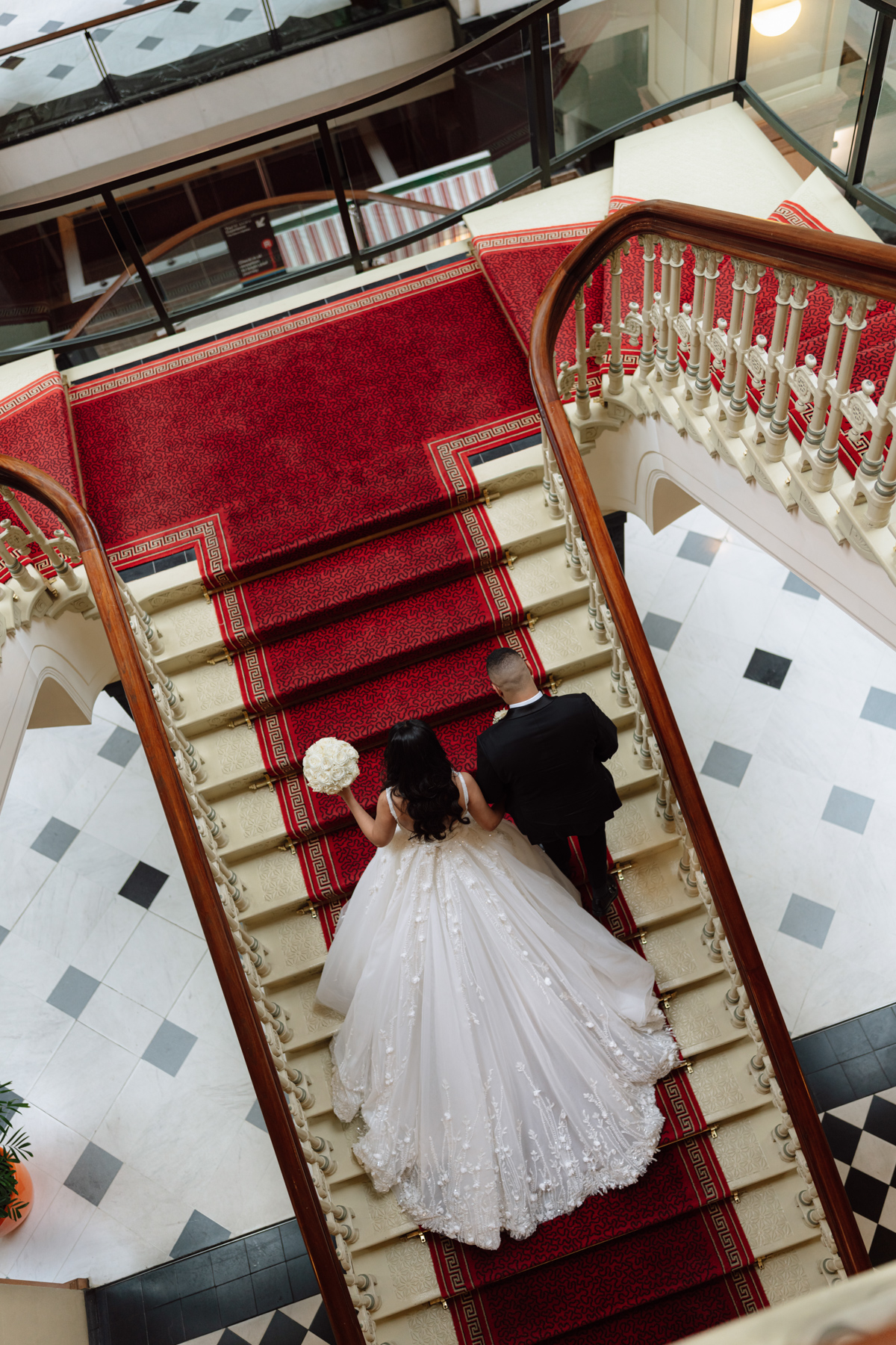 And an aerial view of the happy couple on the stairs. Nice to get that rich play of colours.