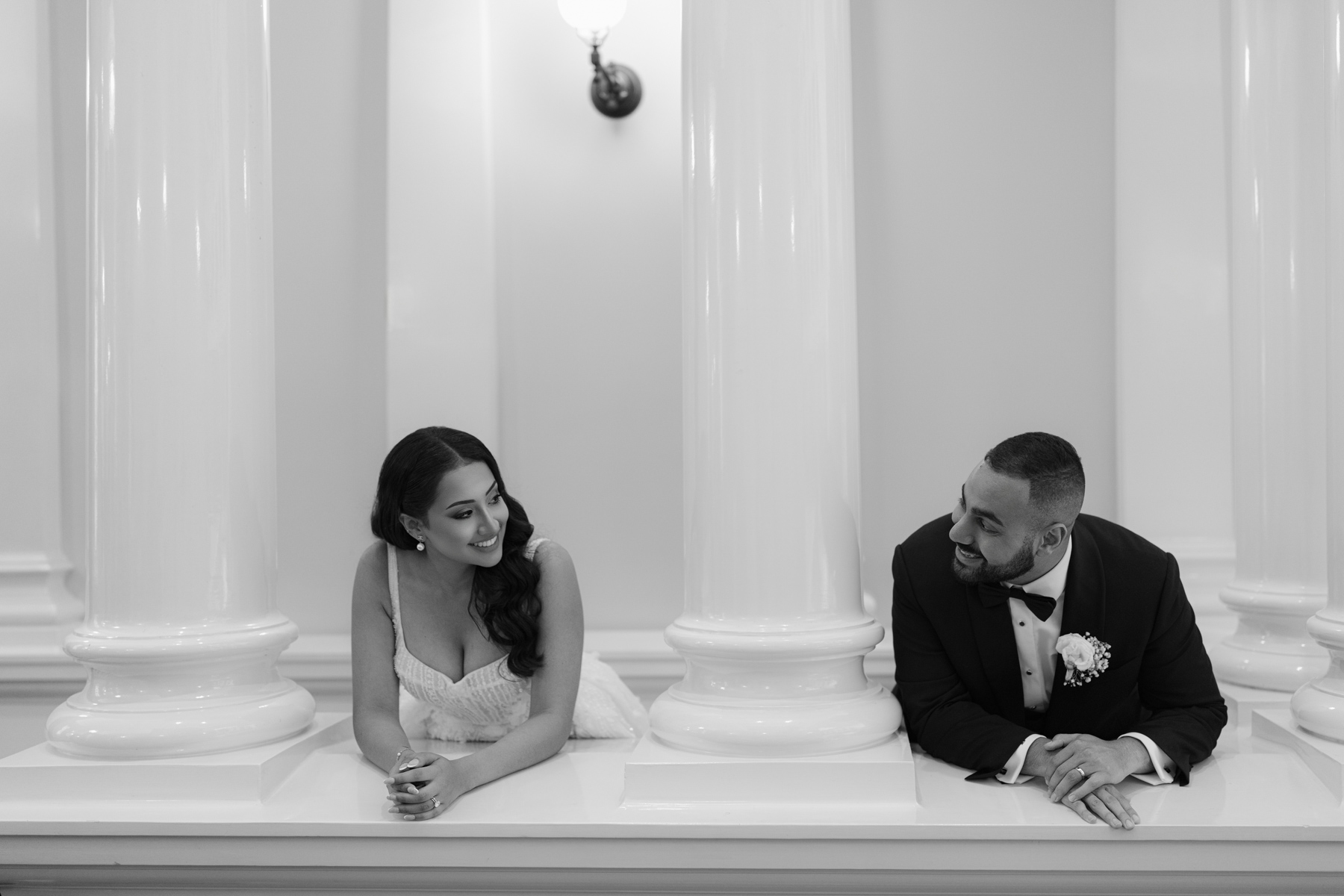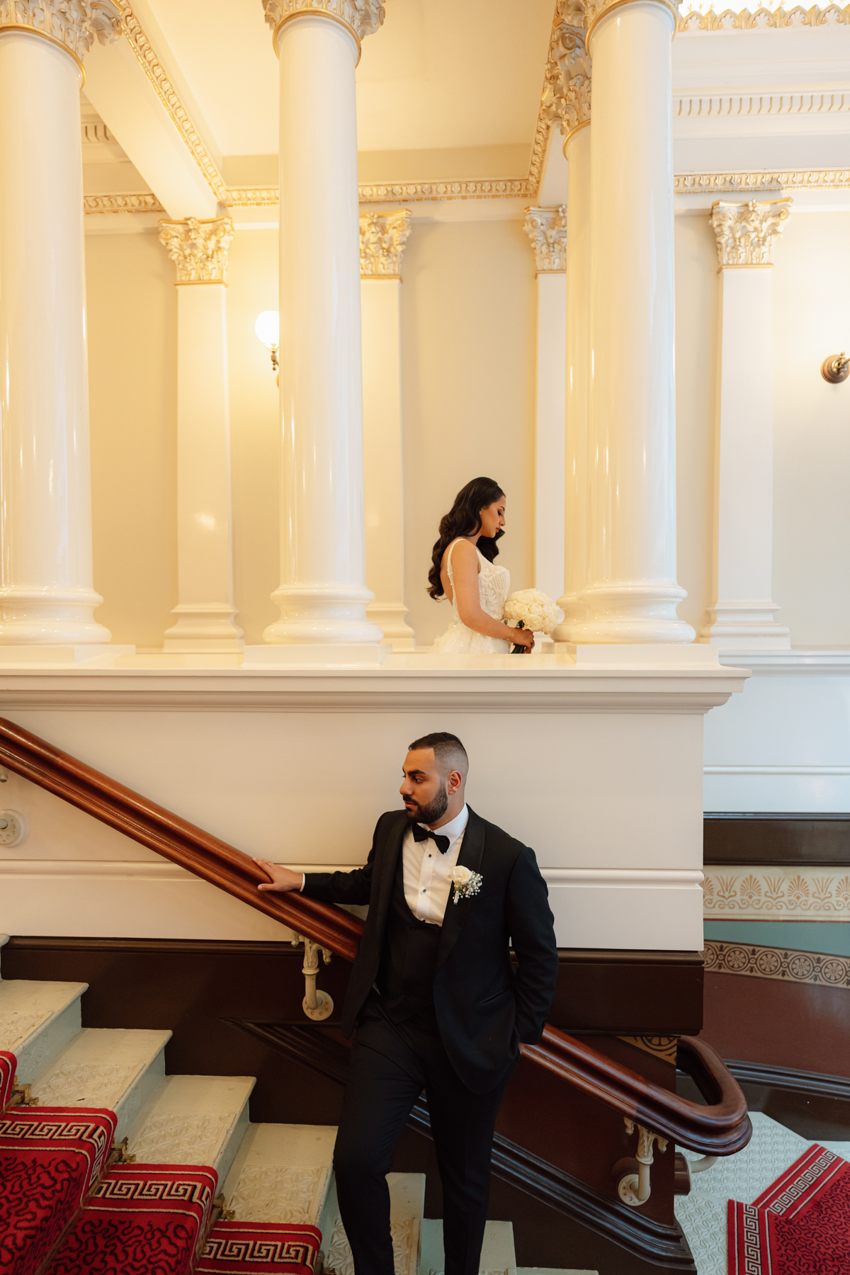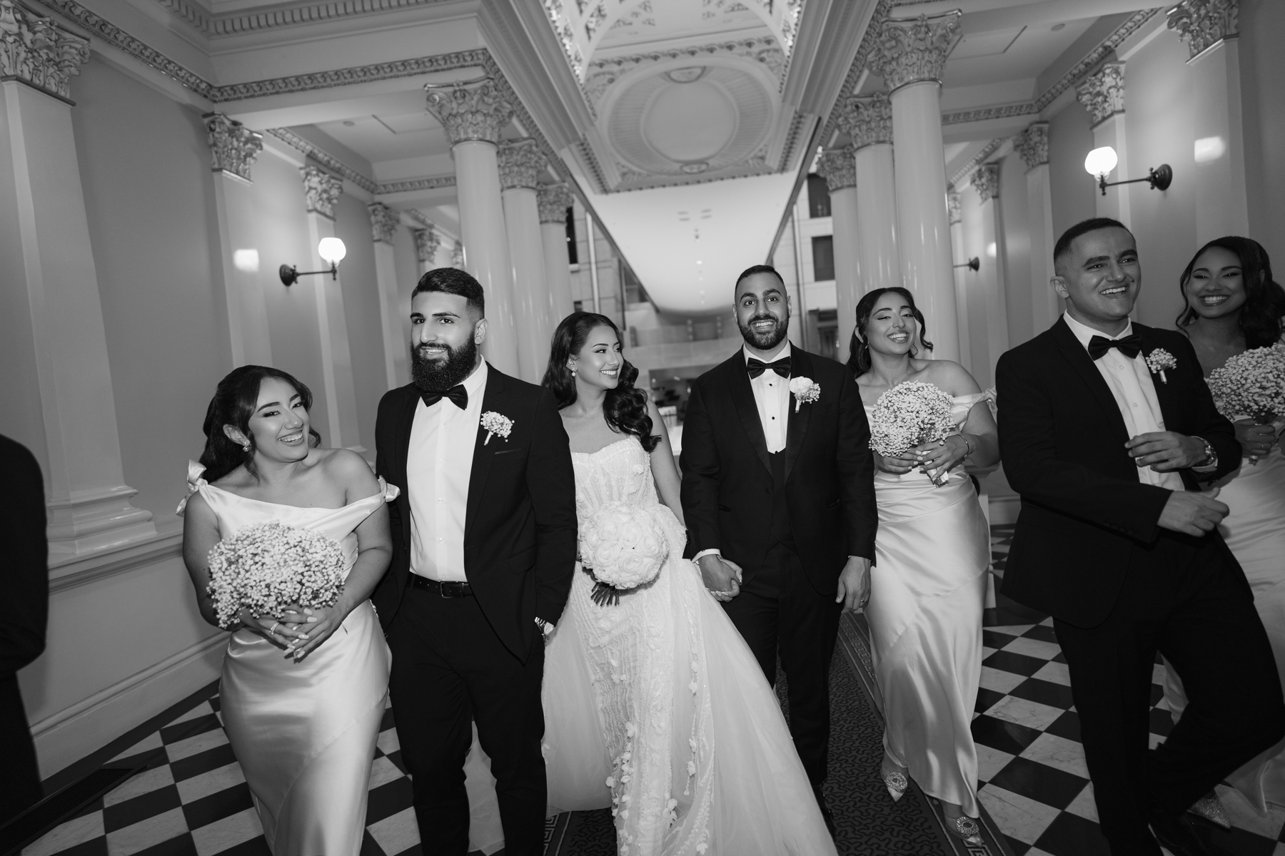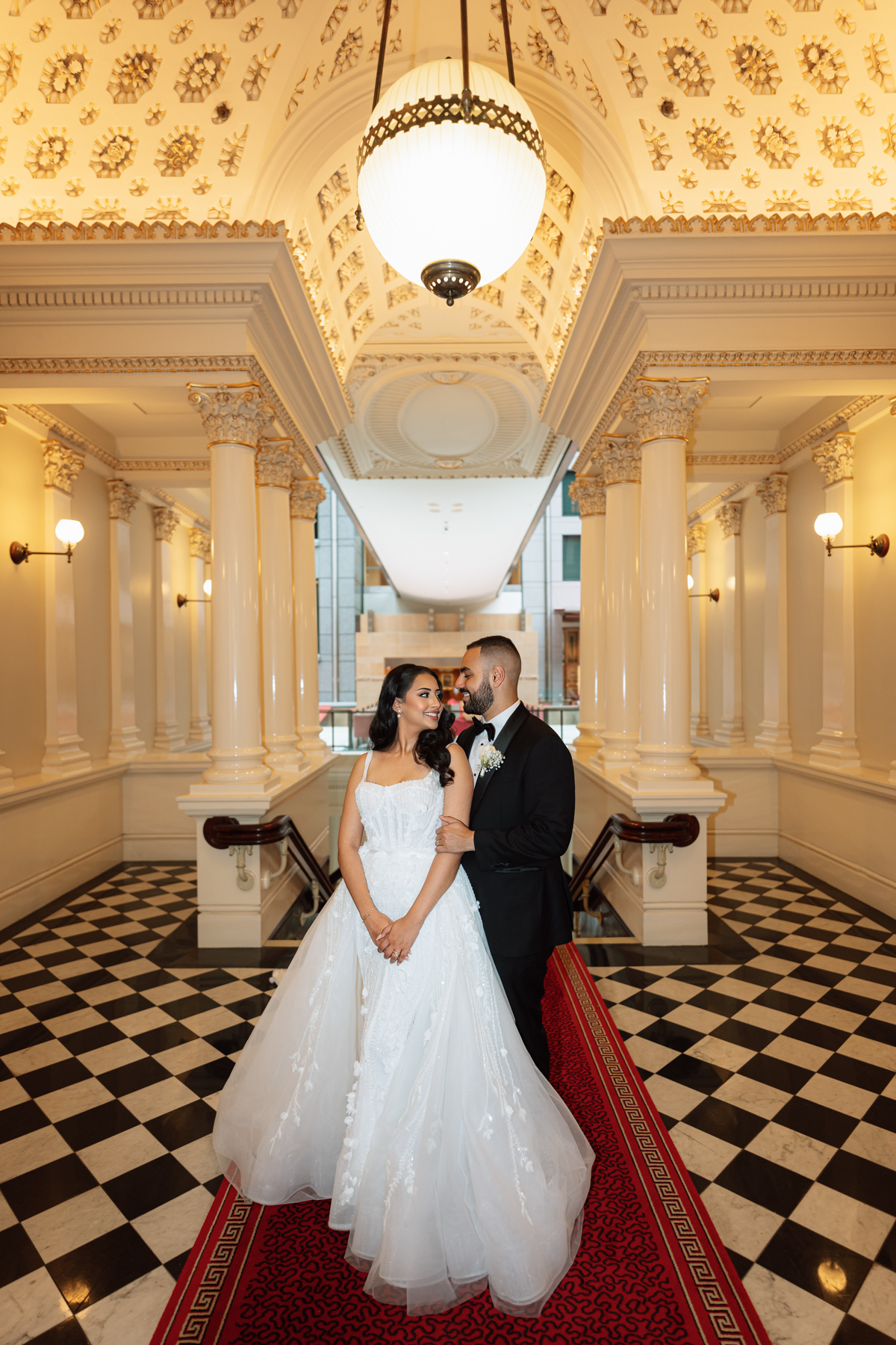 Nice to get that sense of symmetry with the bride and groom in the centre. Marble columns with gold trim look so ancient and grand.