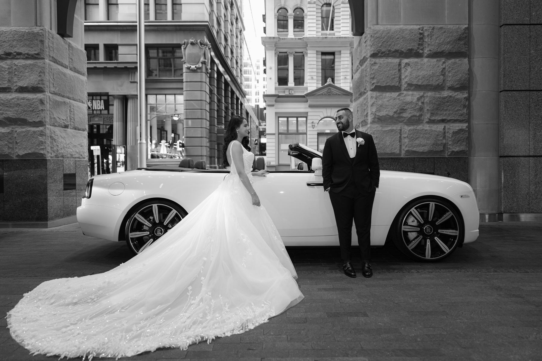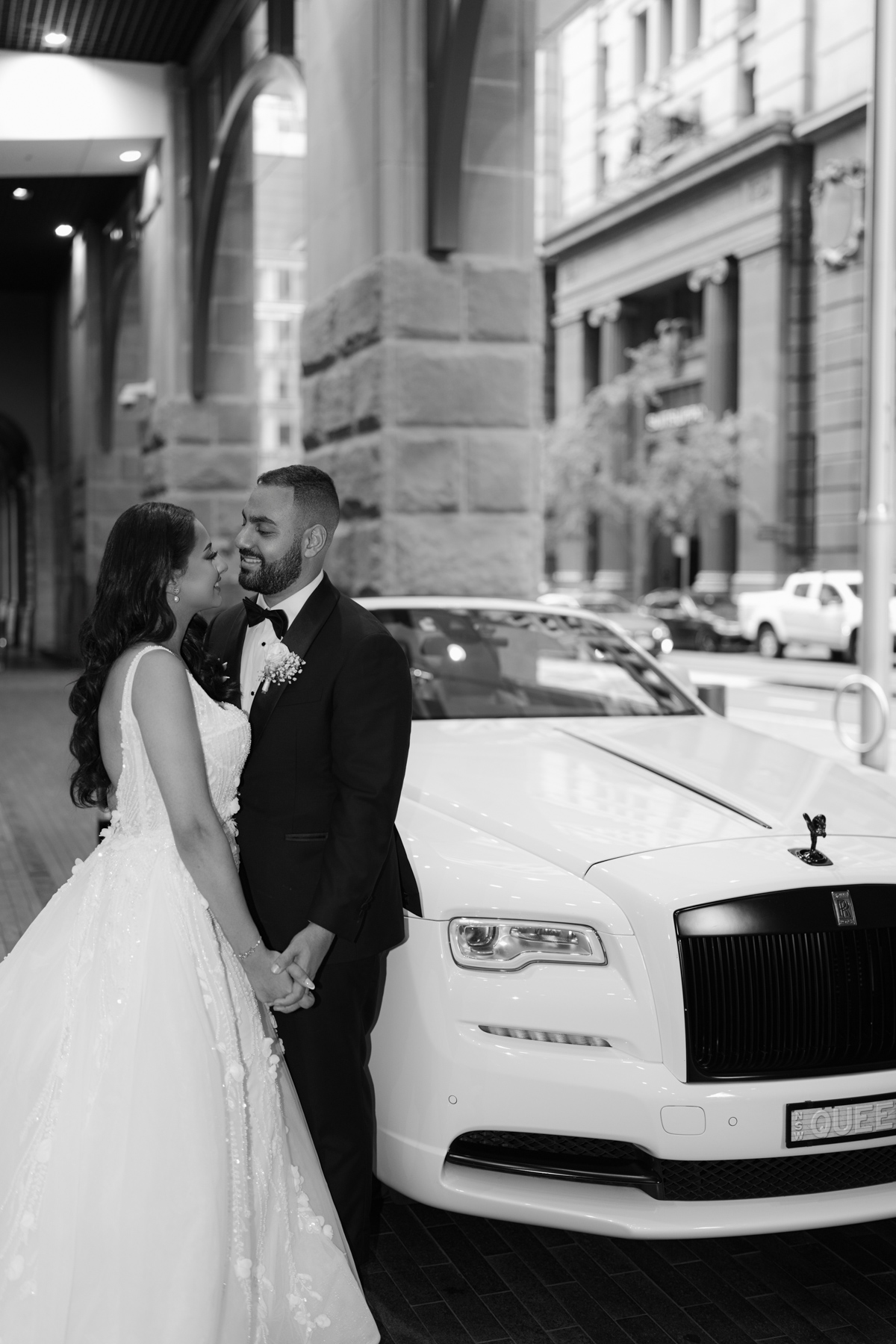 With that prestige white car. With the newlyweds there they just seem to belong together.