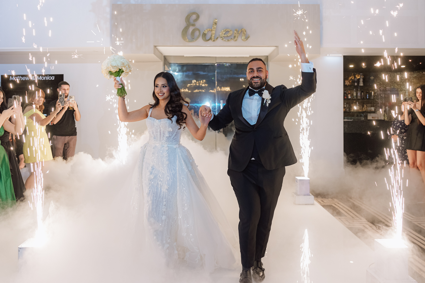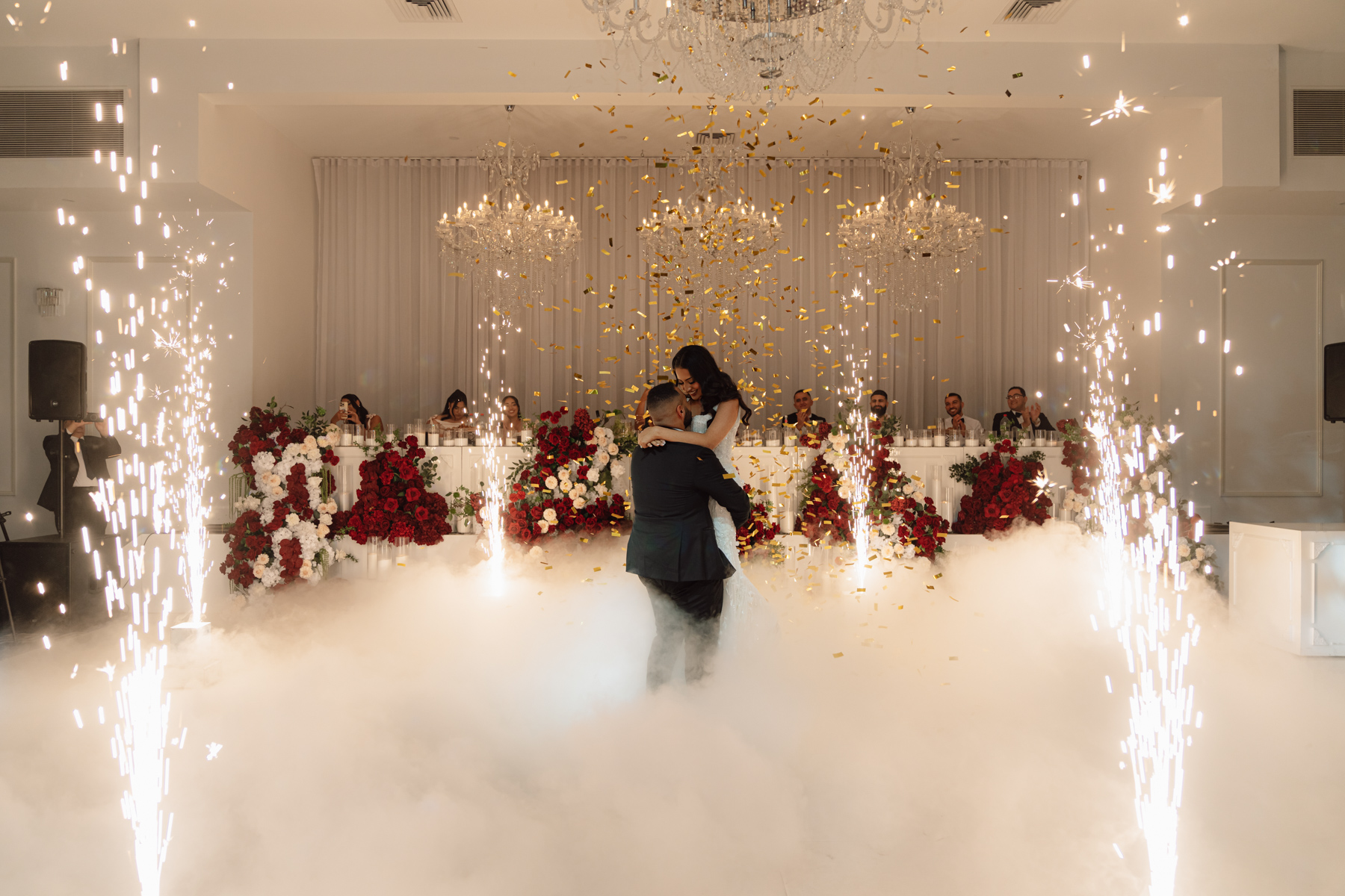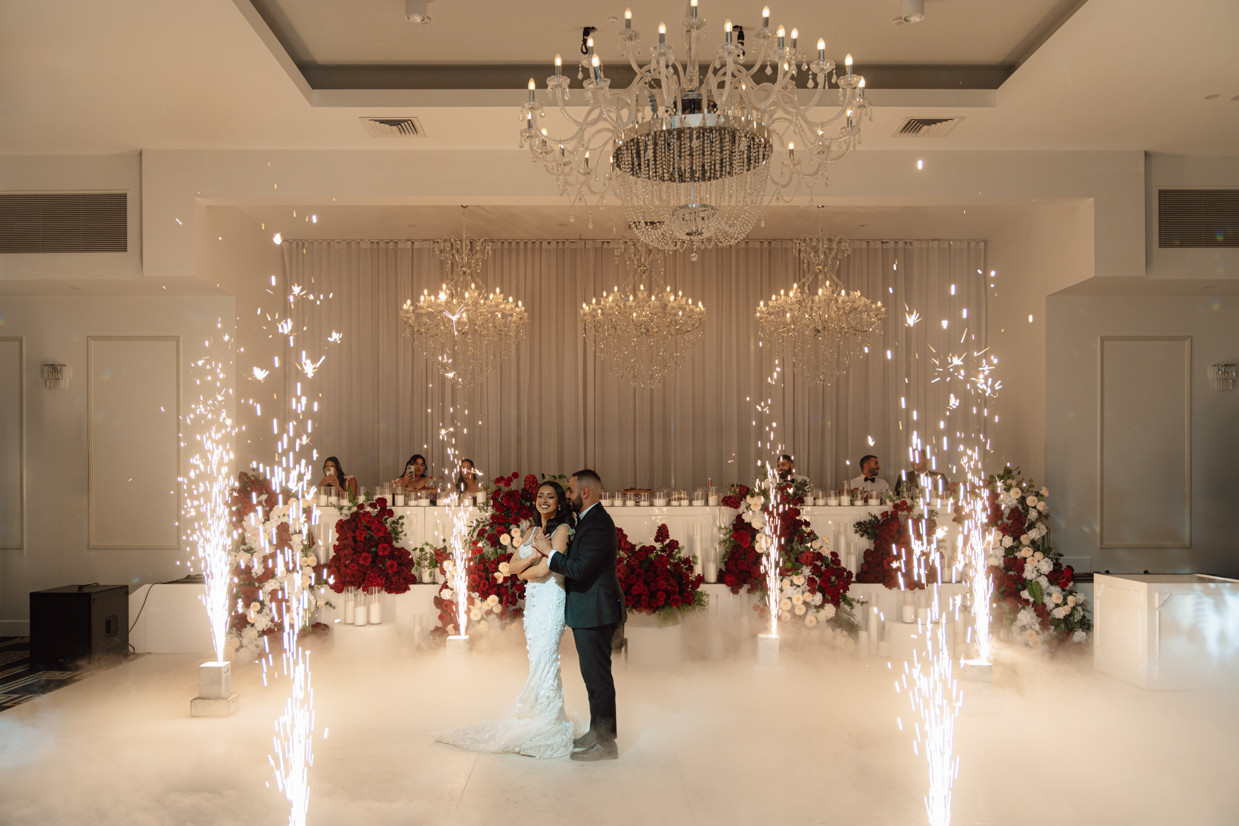 Magnificent to get the lights and smoke with all the wonderful reception décor. The captures what wedding photography is all about.