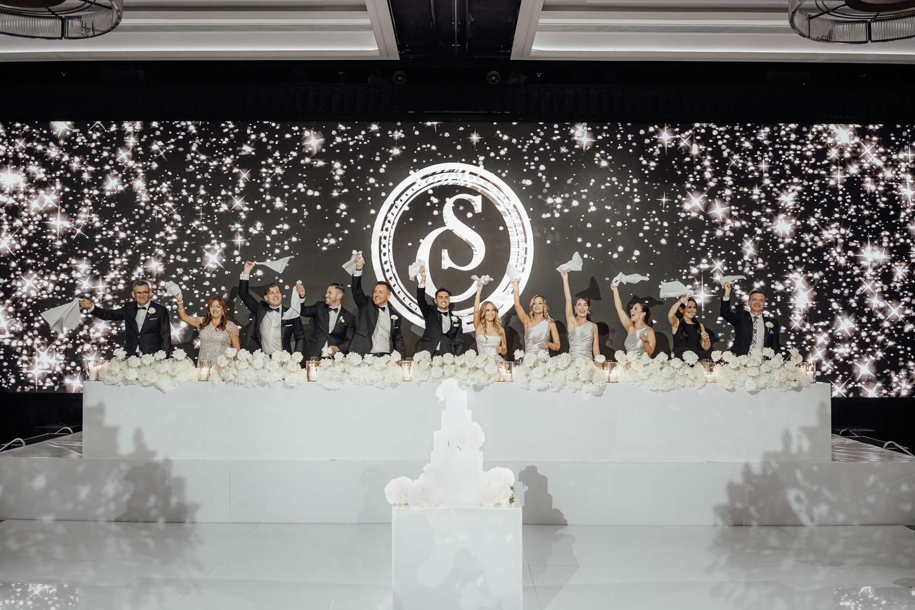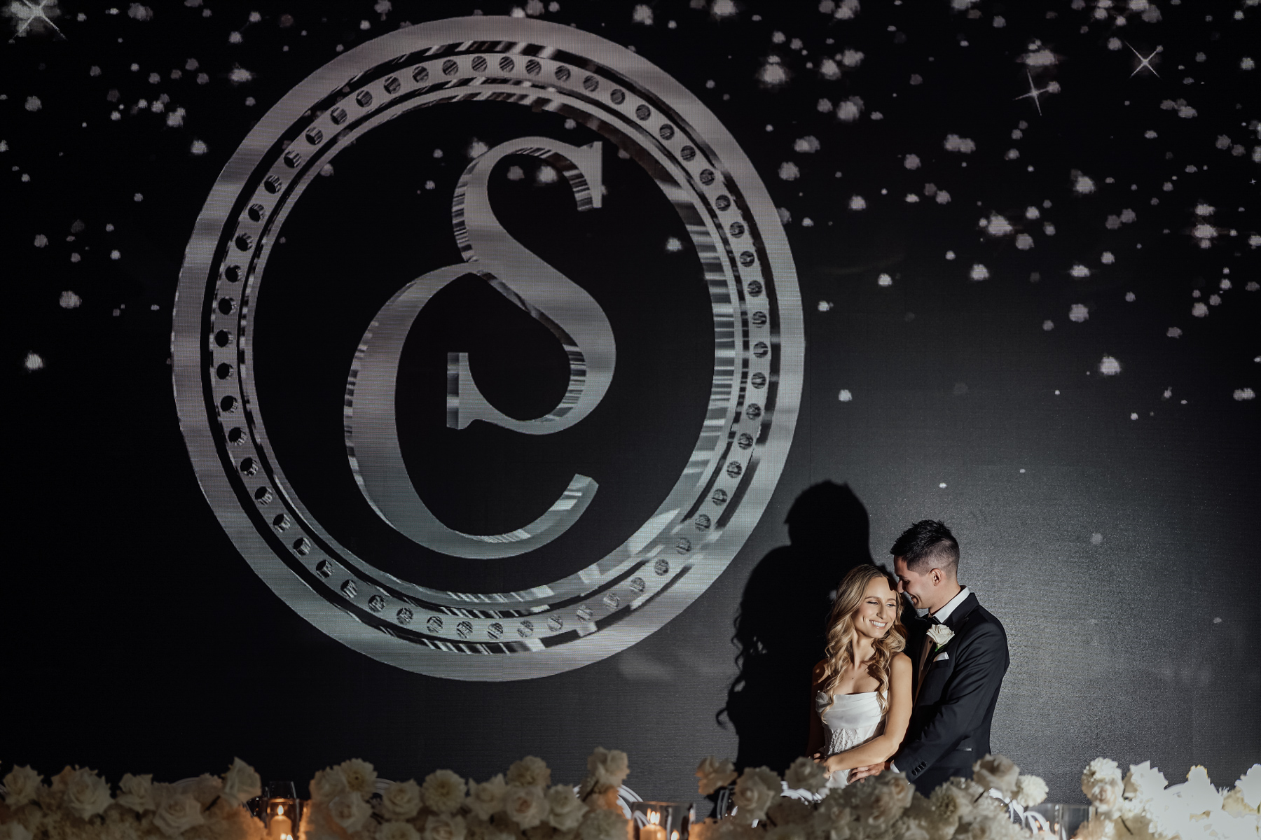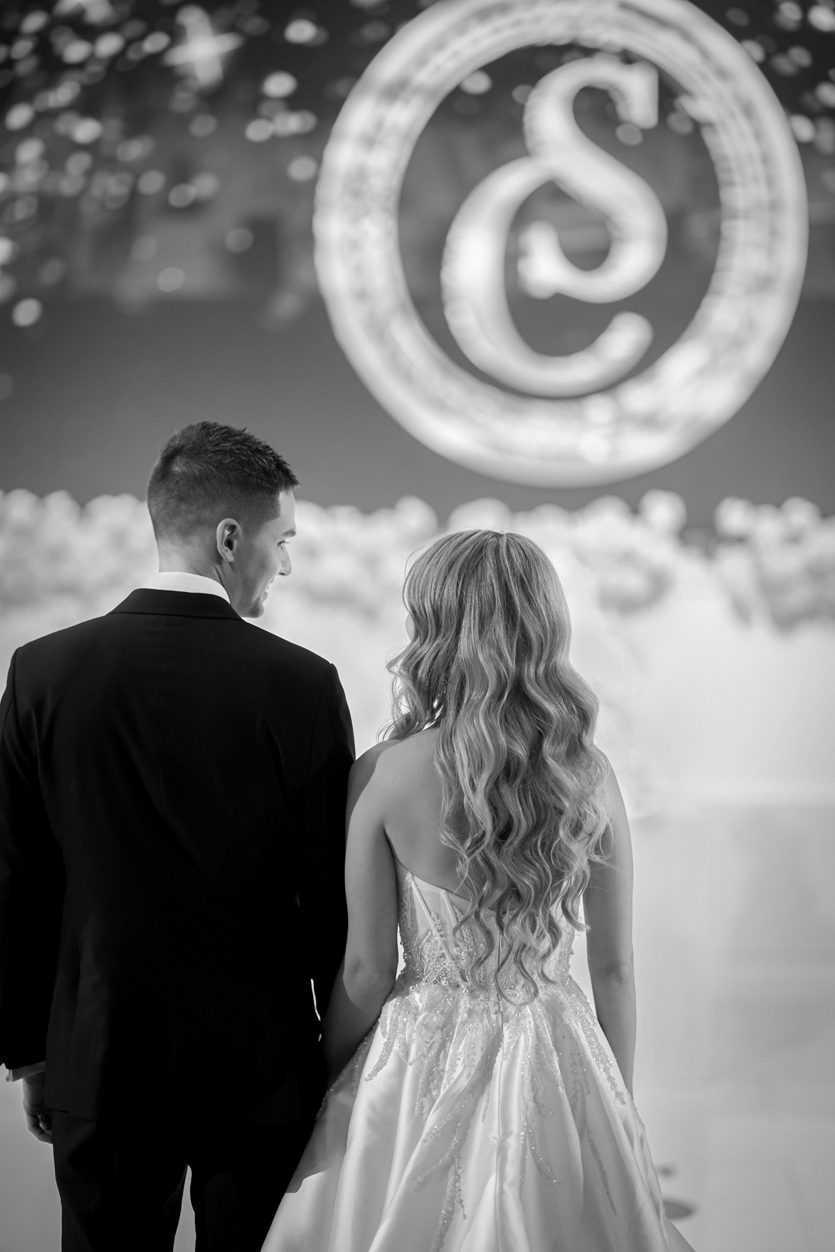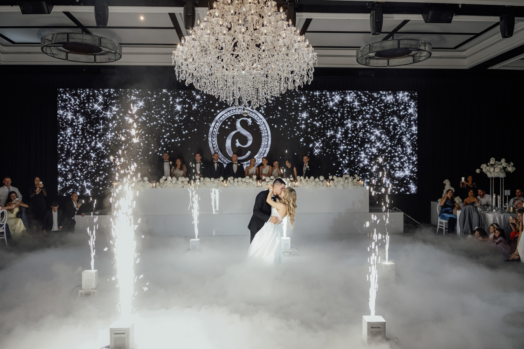 We always like to try and find one image that captures everything. The newlywed couple on the dance floor, the smoke, the chandler, the stars in the background. All with that sense of balance and symmetry.