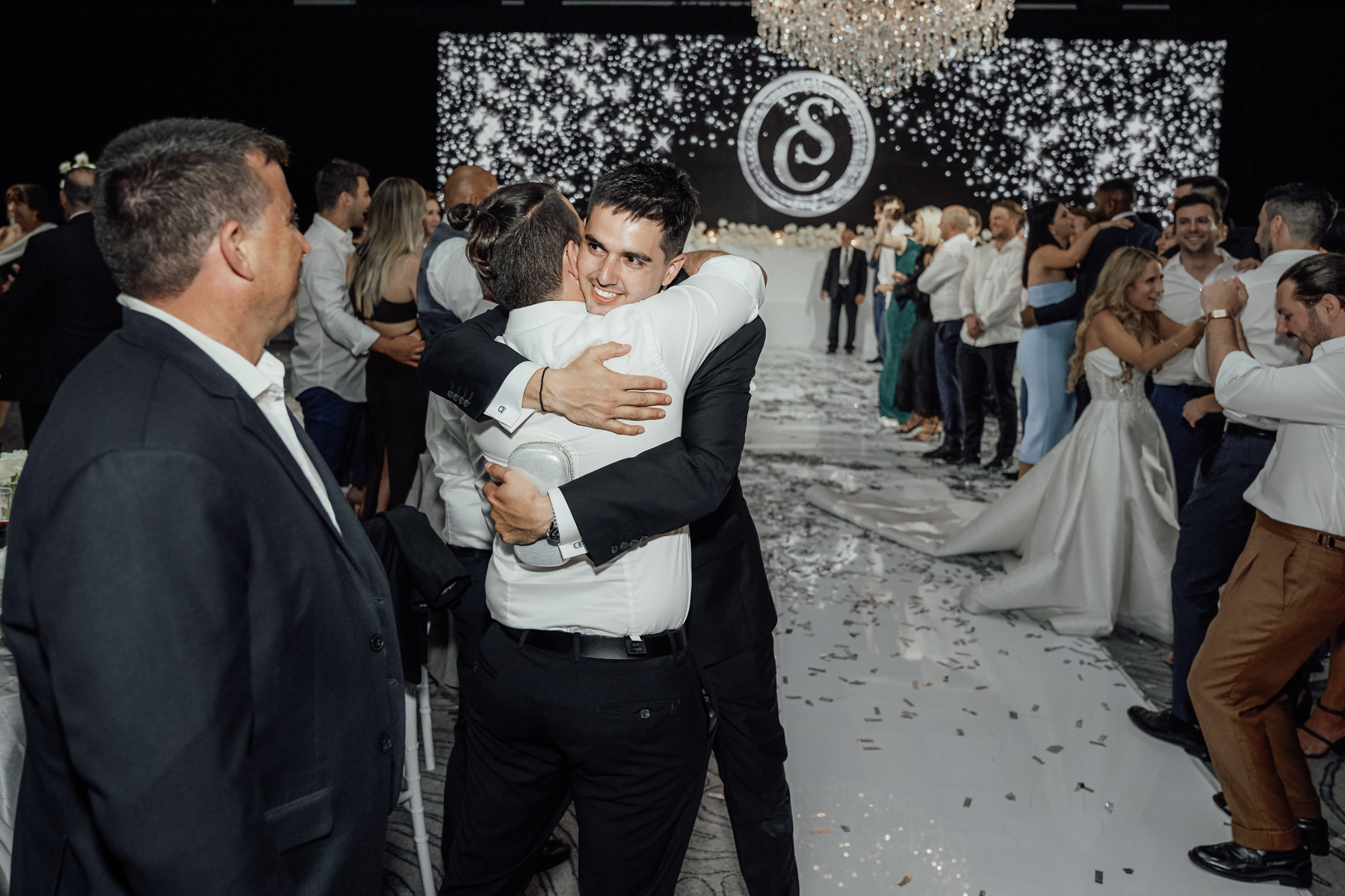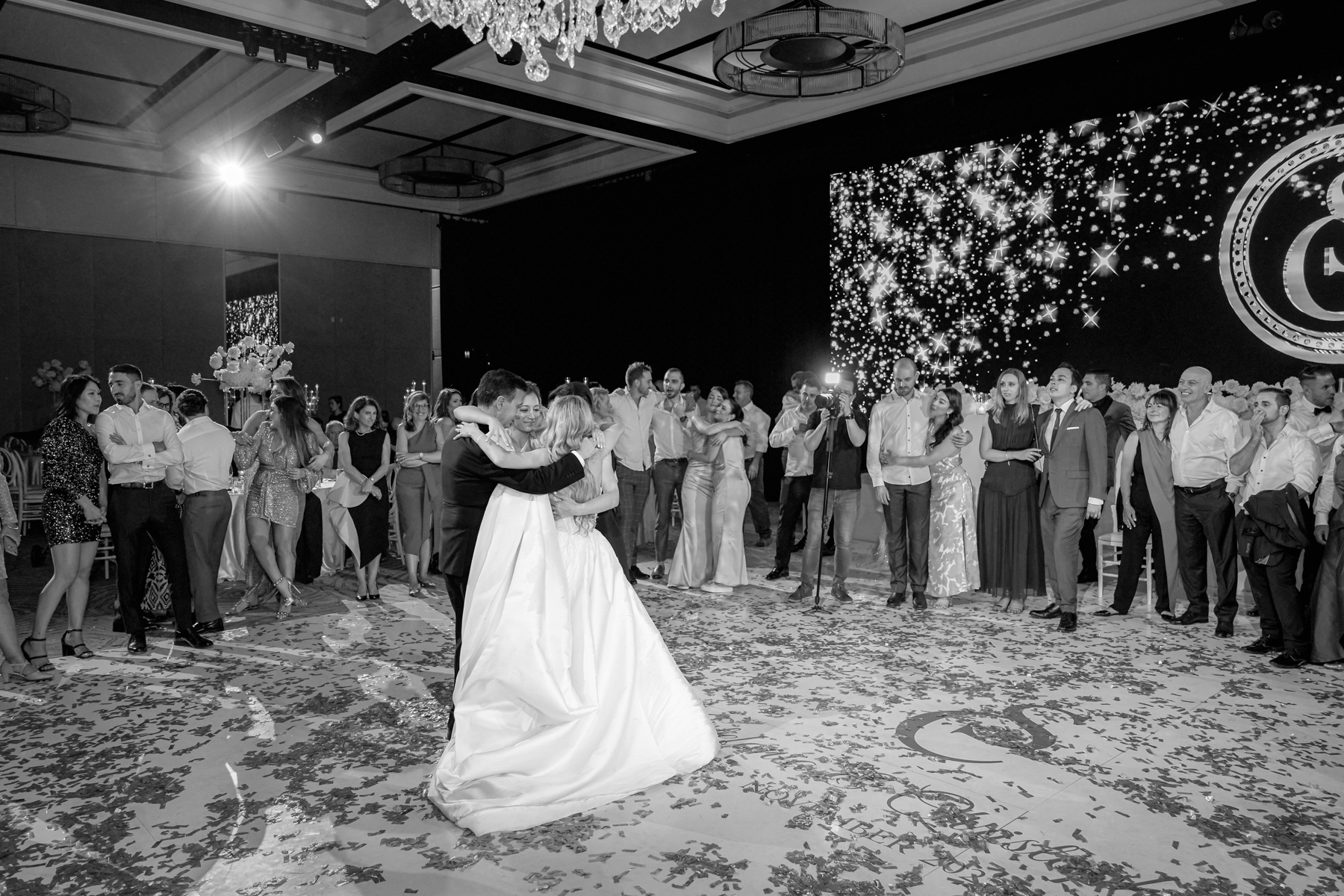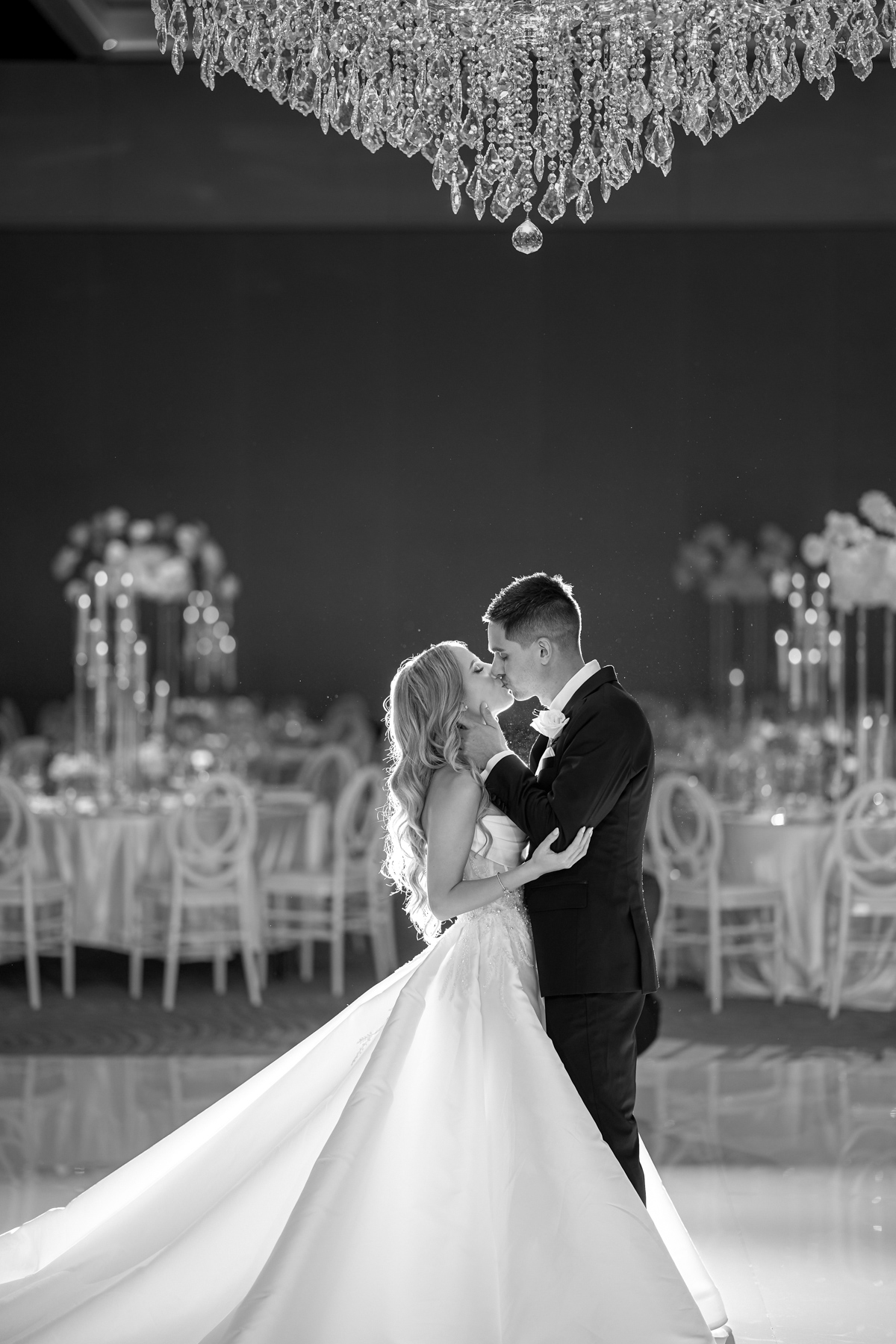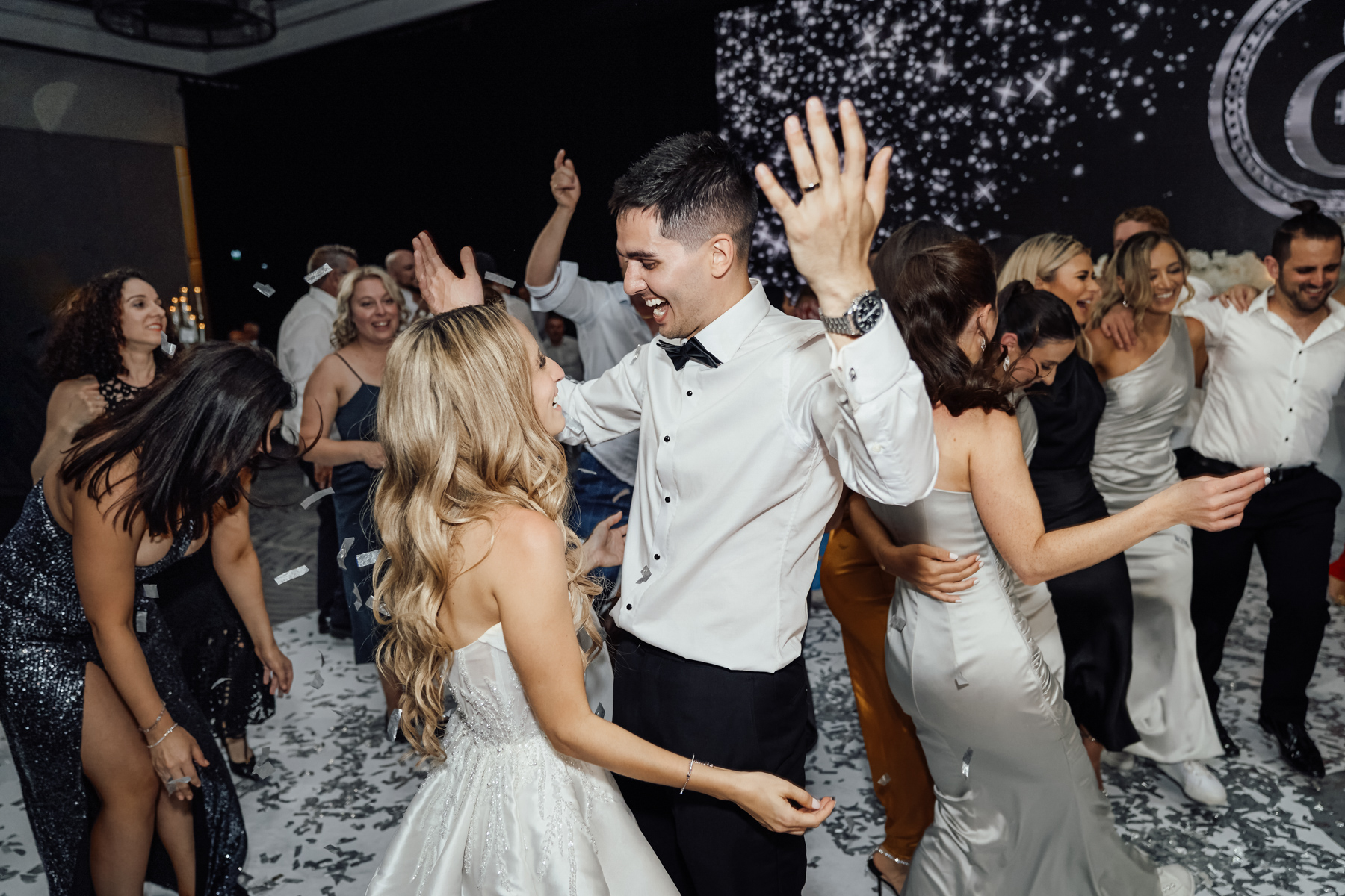 We always like to try and find one image that captures everything. The newlywed couple on the dance floor, the smoke, the chandler, the stars in the background. All with that sense of balance and symmetry.