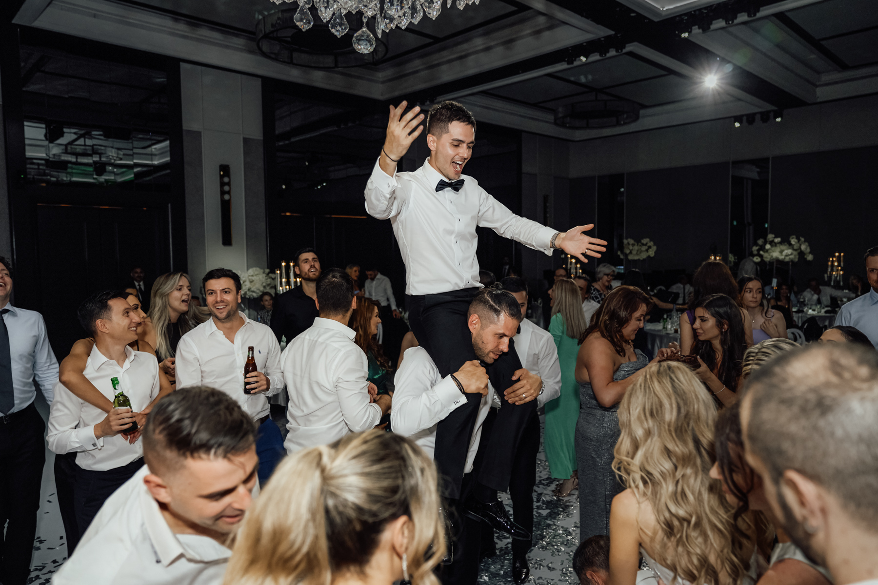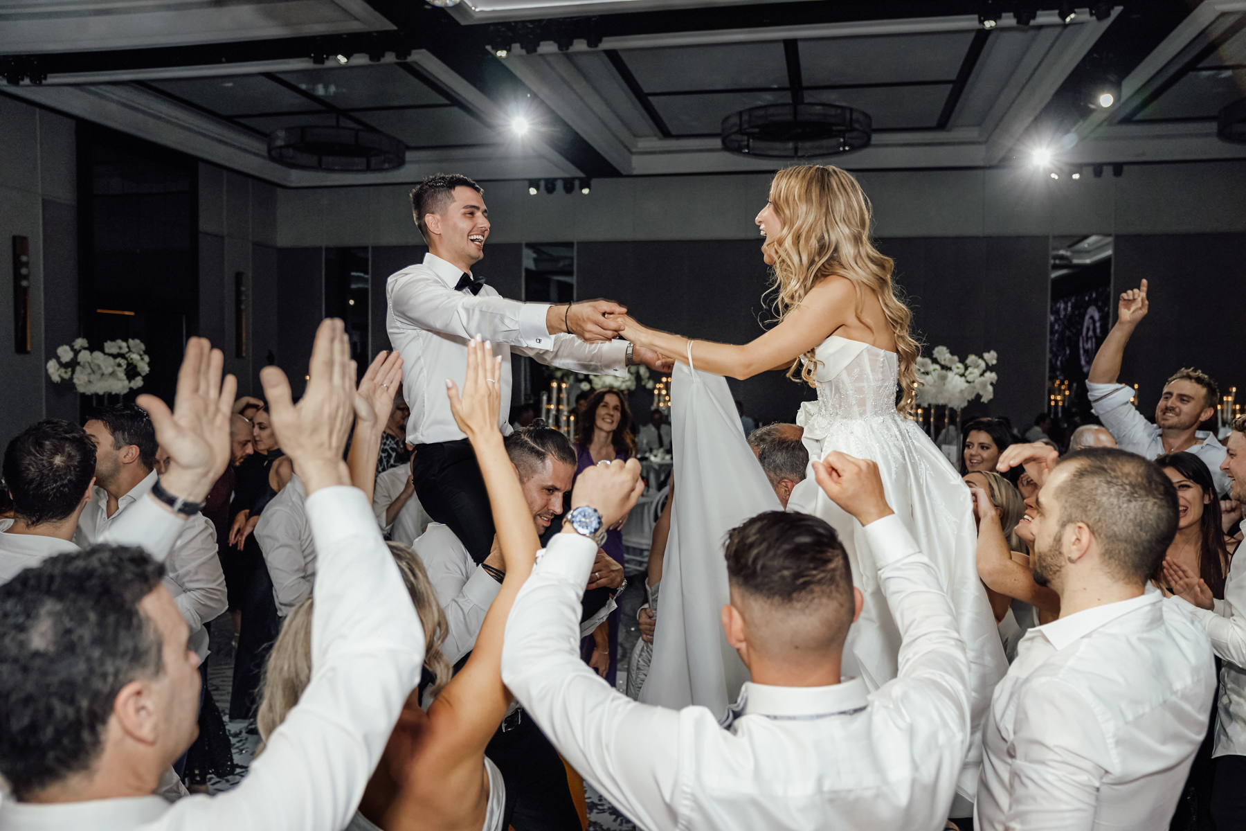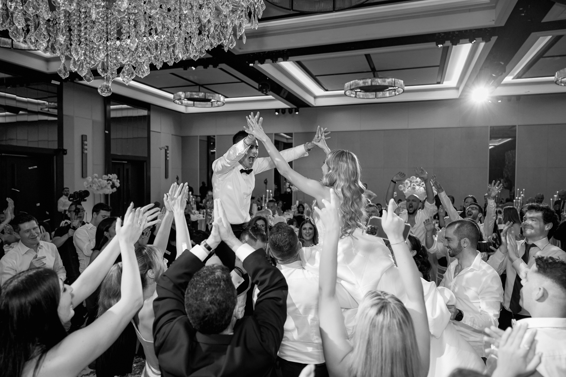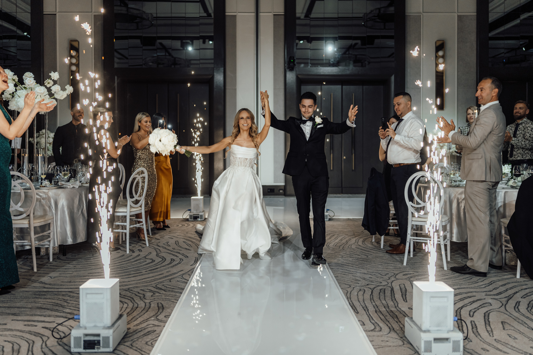 We always like to try and find one image that captures everything. The newlywed couple on the dance floor, the smoke, the chandler, the stars in the background. All with that sense of balance and symmetry.