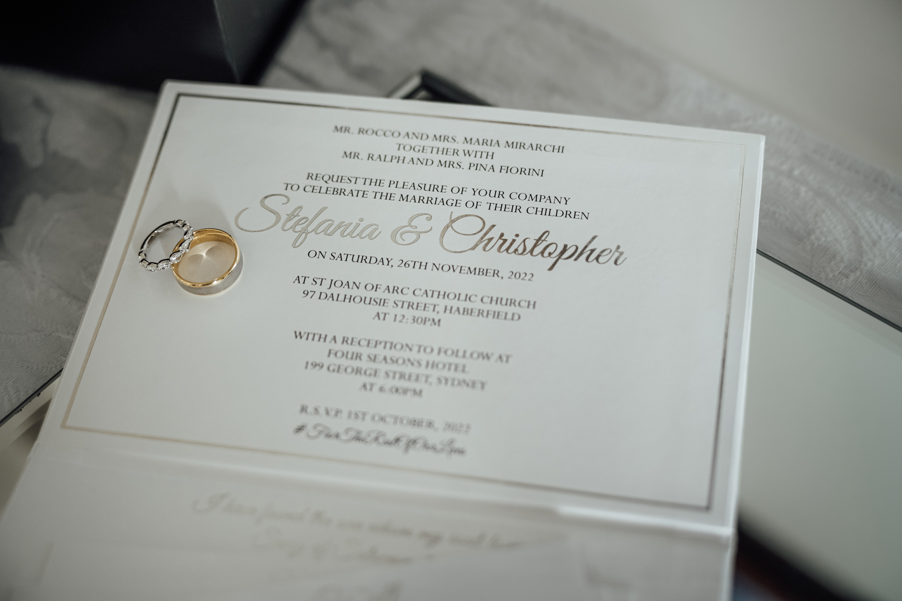 And the invitation, with the rings. We feel that images like this bookend the event.