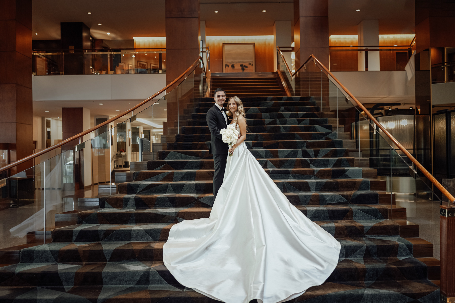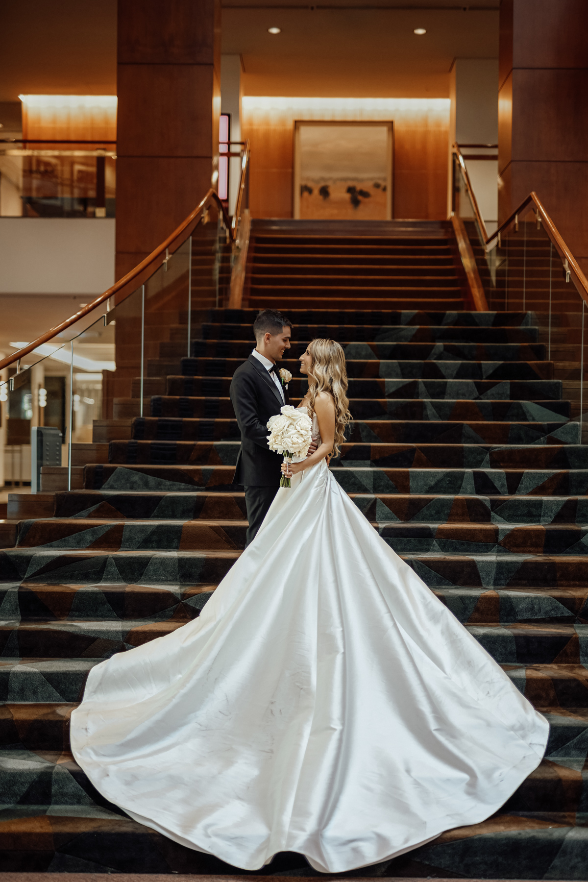 And a more traditional stairway photo of the happy couple, this time at the Four Seasons Hotel.