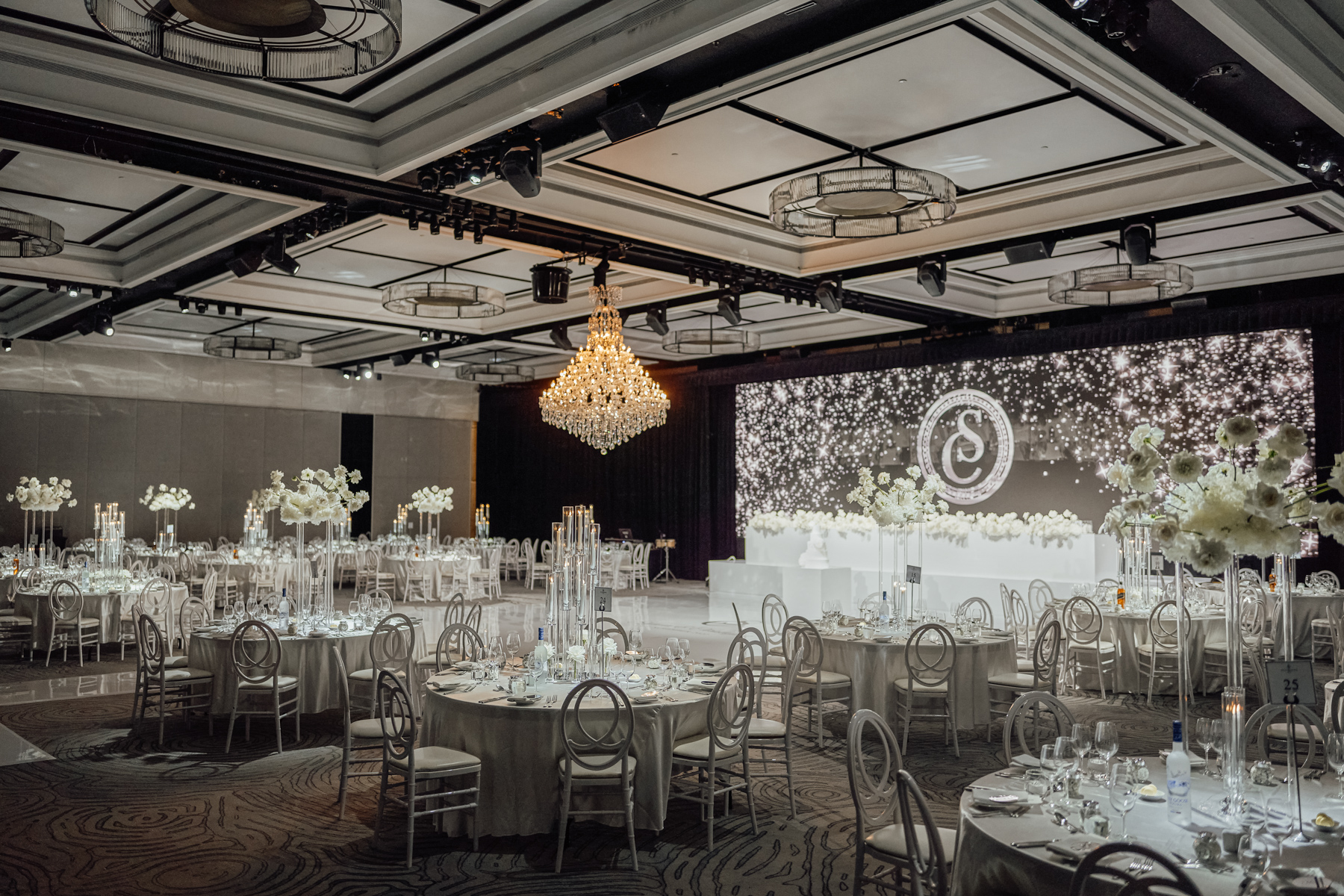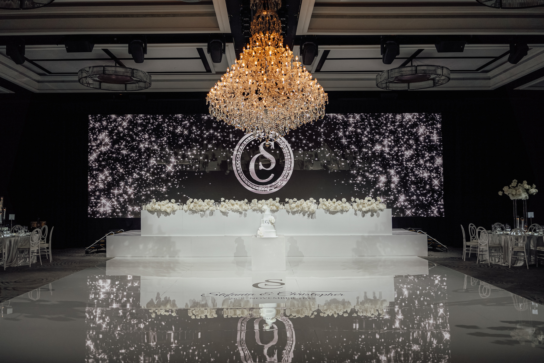 A most grand reception room at the Four Seasons. Starlight background.