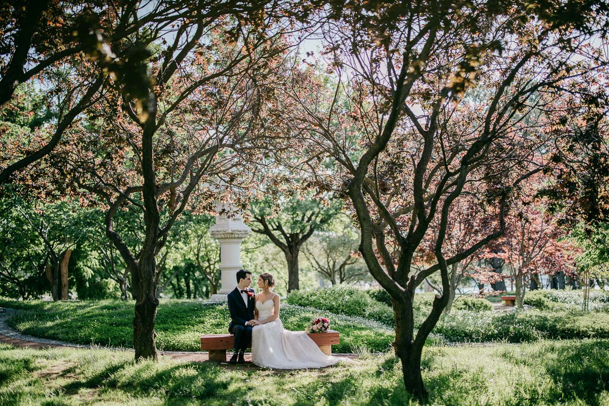 Even the outdoor wedding photos continued the white and green look, to great effect.