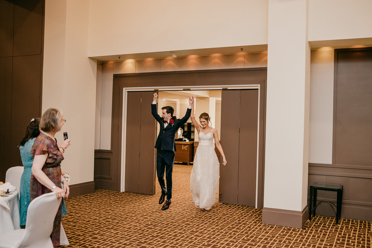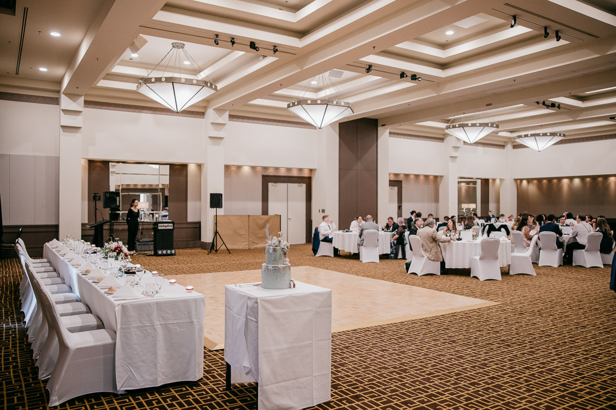 A warmer look for the reception hall, with the classic look of a candle style chandelier.
