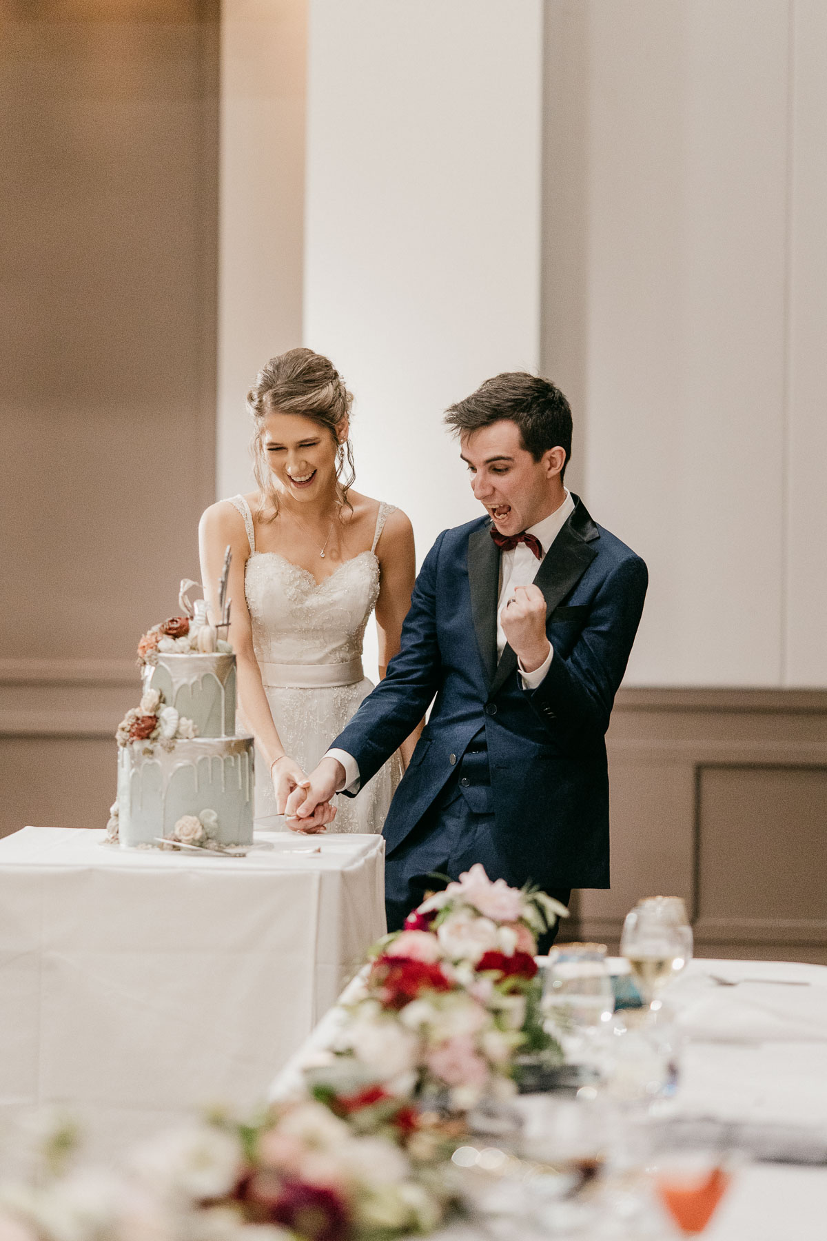 The happy newlywed couple’s first dance, mist and lights gives another fairy tale moment. We love the sense of symmetry in these shots.