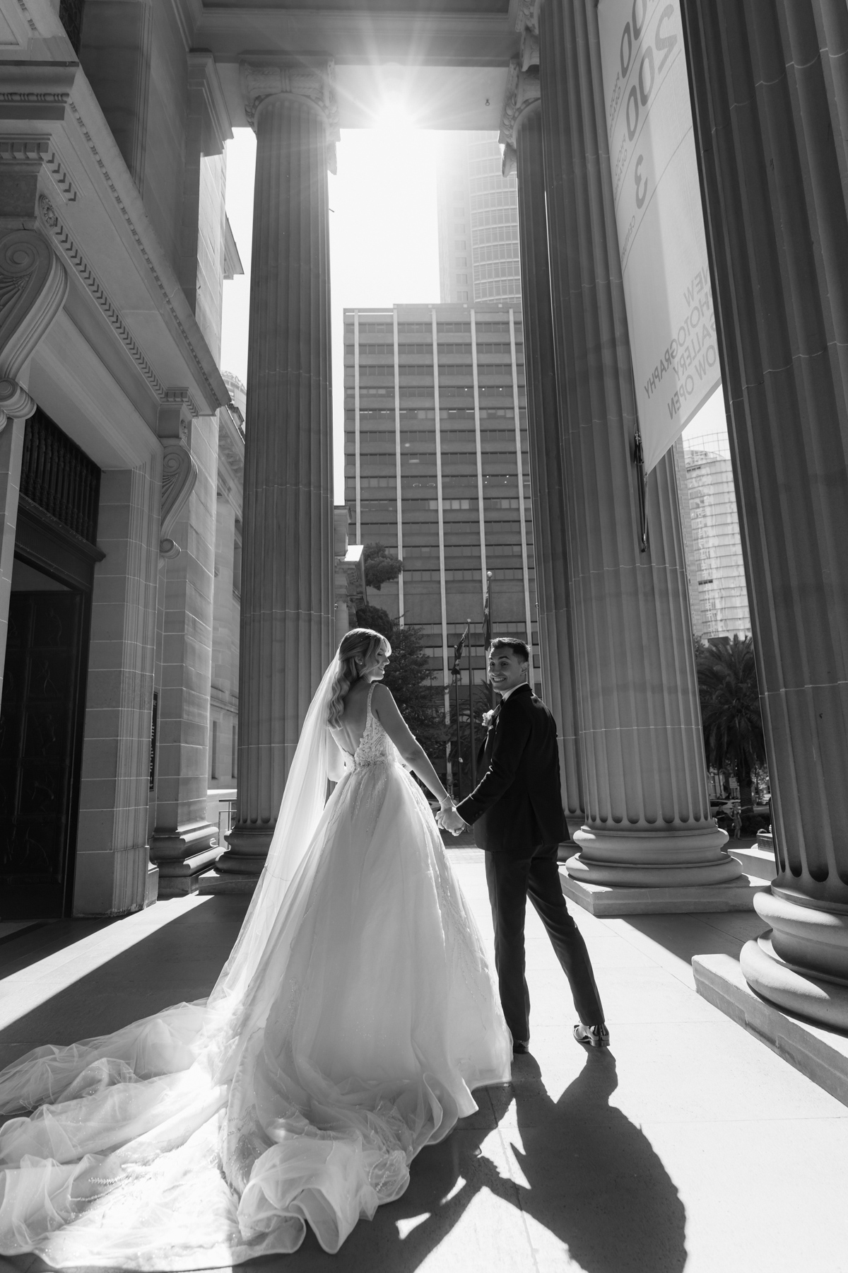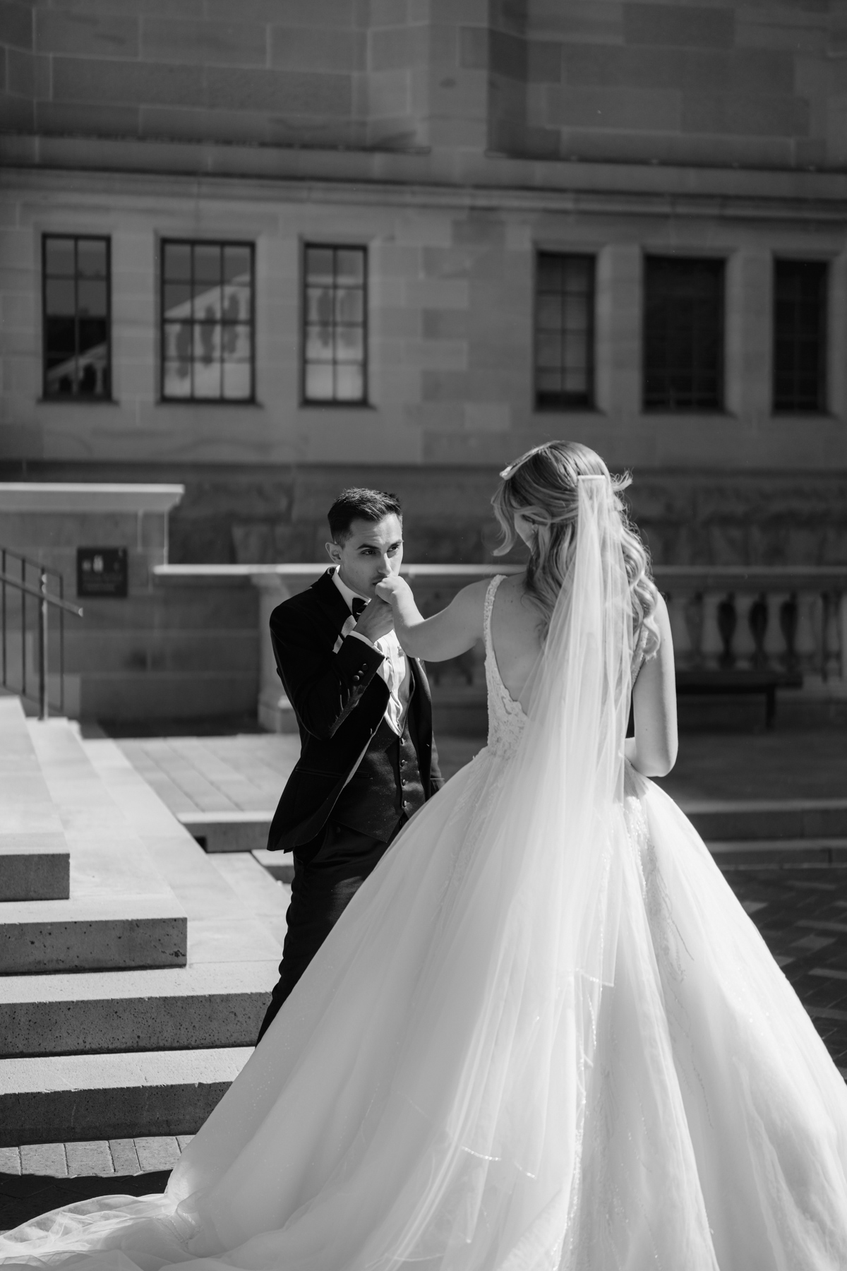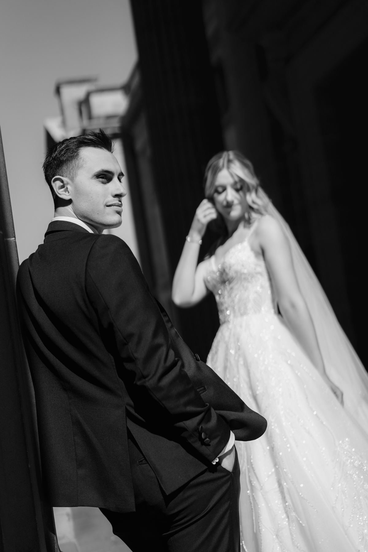 Yet in black and white the bride looks quite formal and elegant.