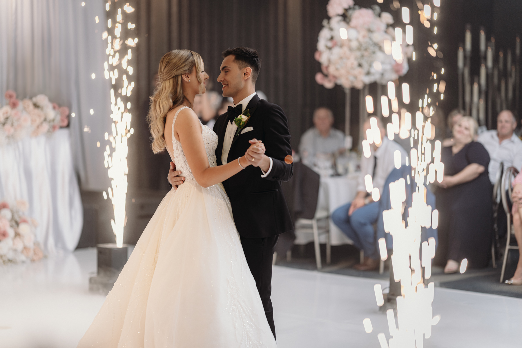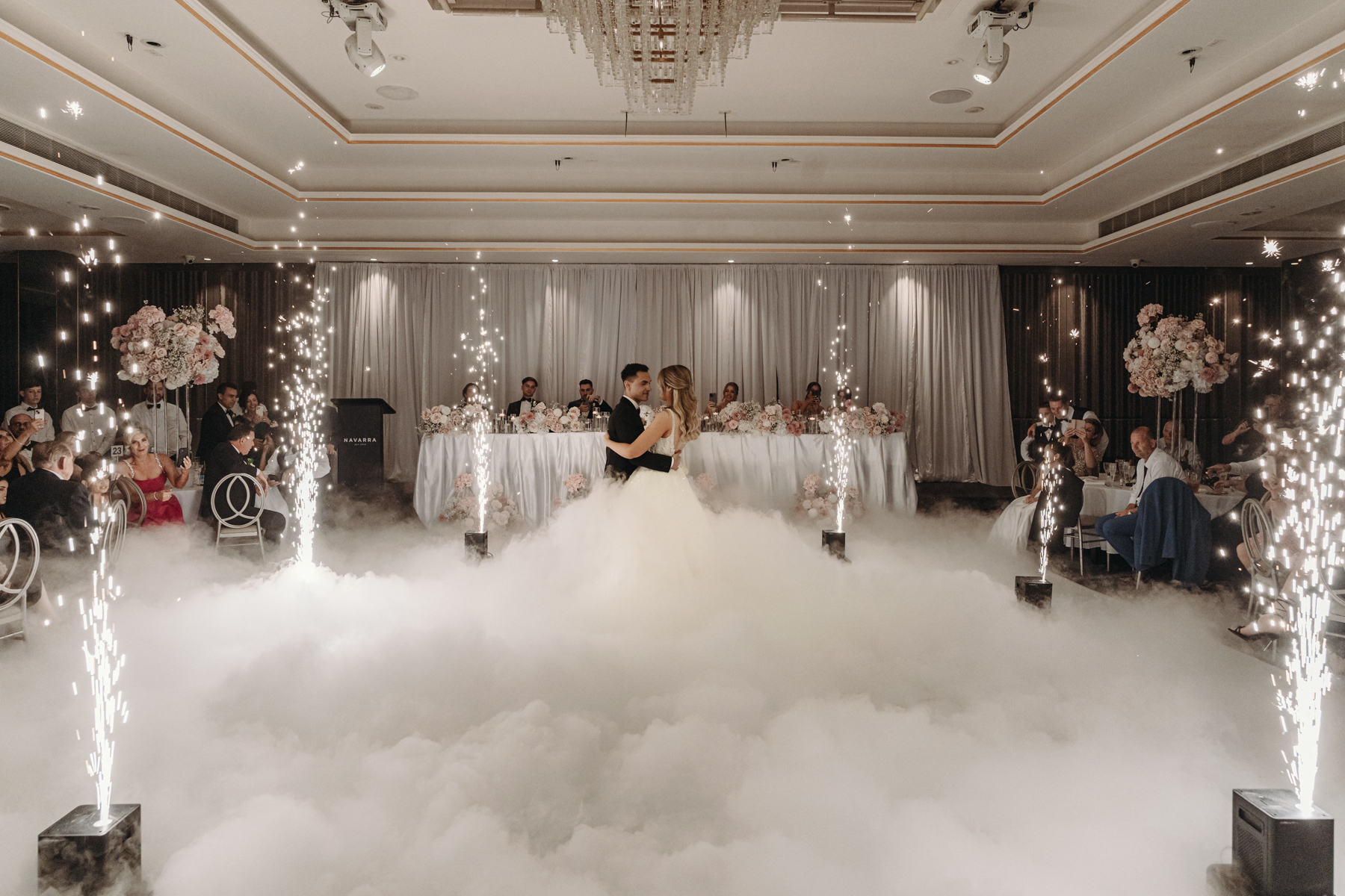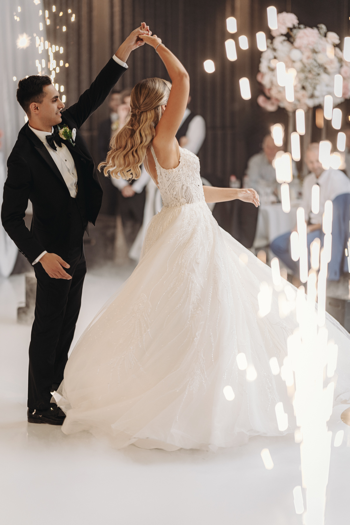 The happy couple’s first dance amid smoke and lights. We spend a lot of time trying to capture images like this.