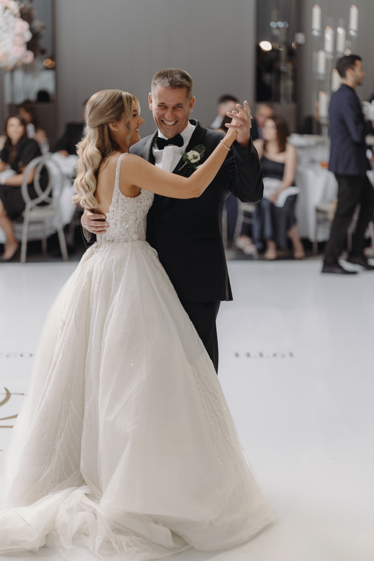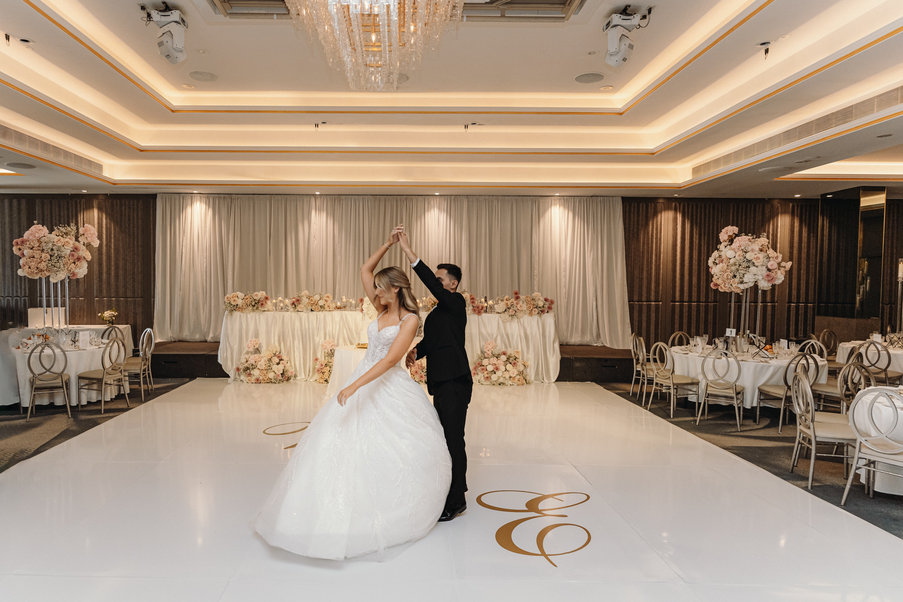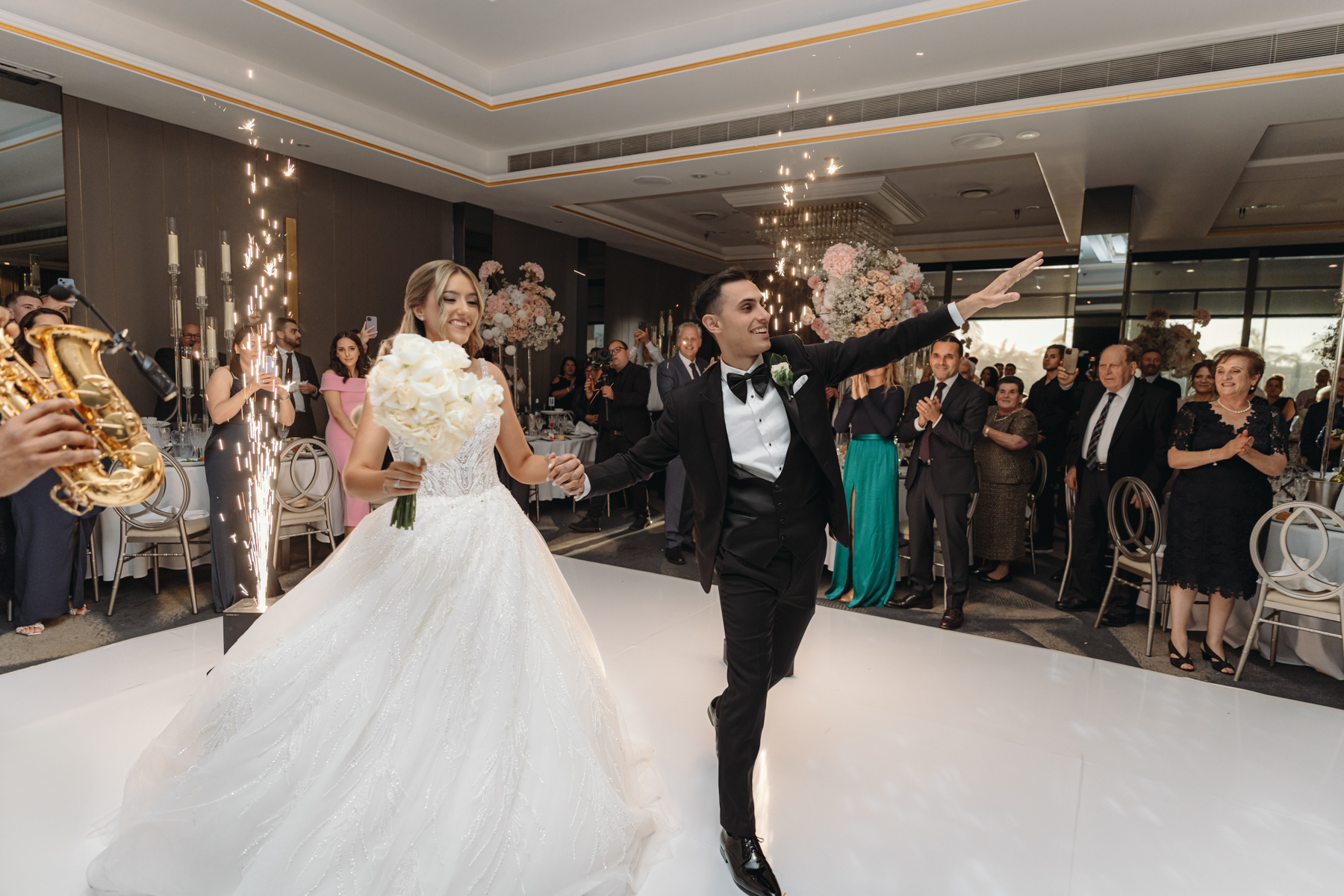 The happy couple’s first dance amid smoke and lights. We spend a lot of time trying to capture images like this.