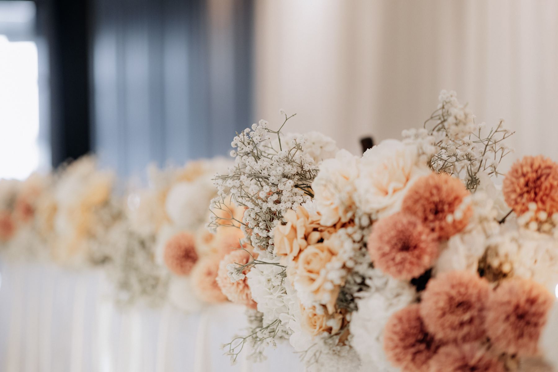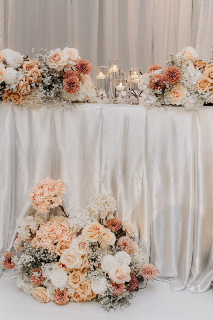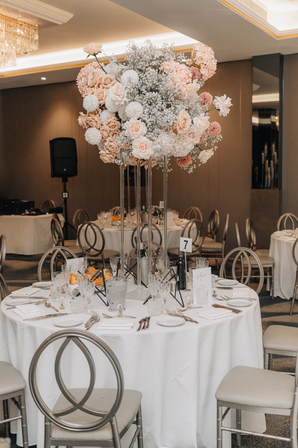 Inside Le Montage, all gold and white. We especially like the soft colour flower arrangements.