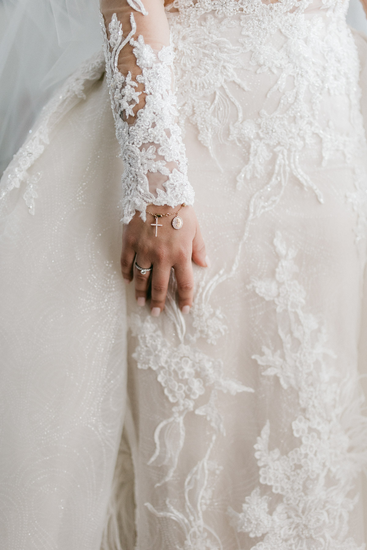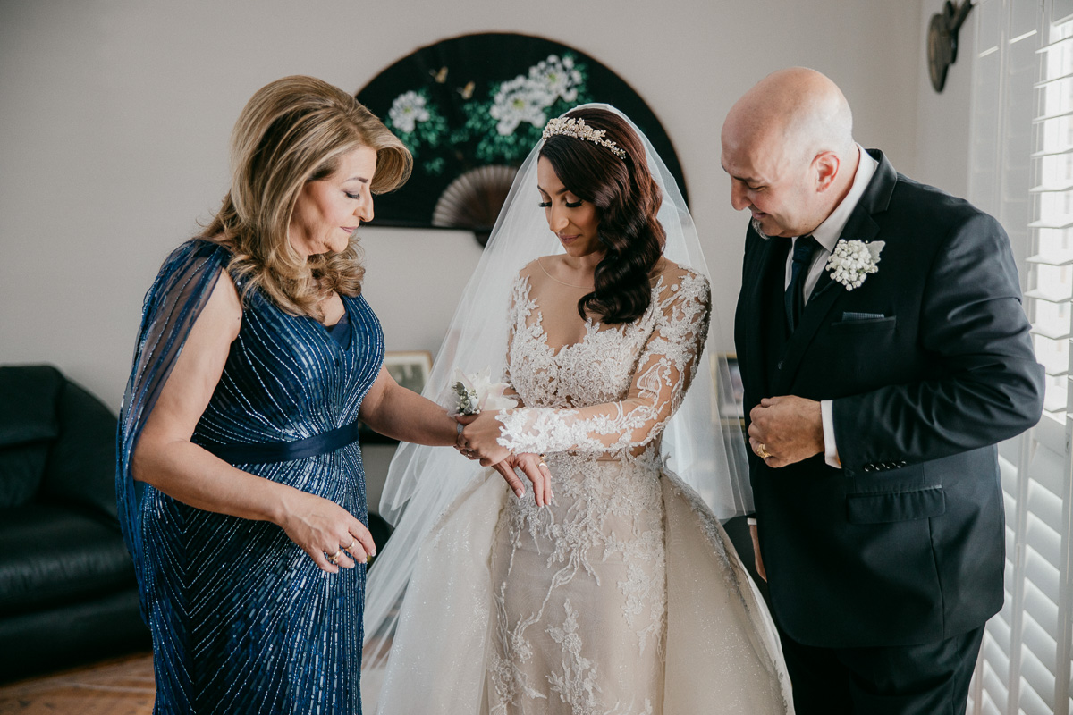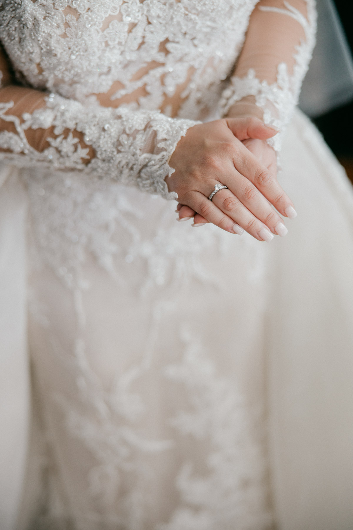 Subdued light colours for floral arrangements, which match the bridesmaid’s dresses.