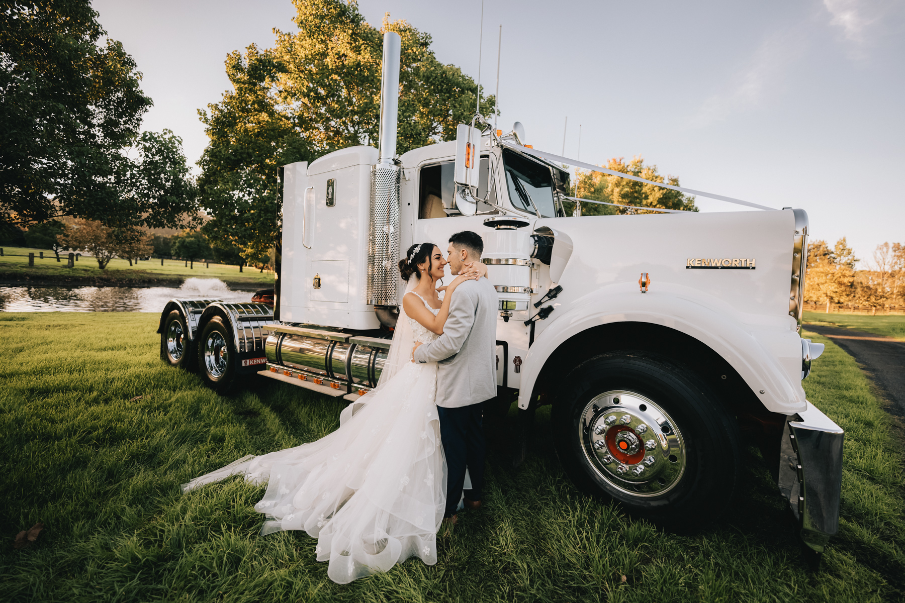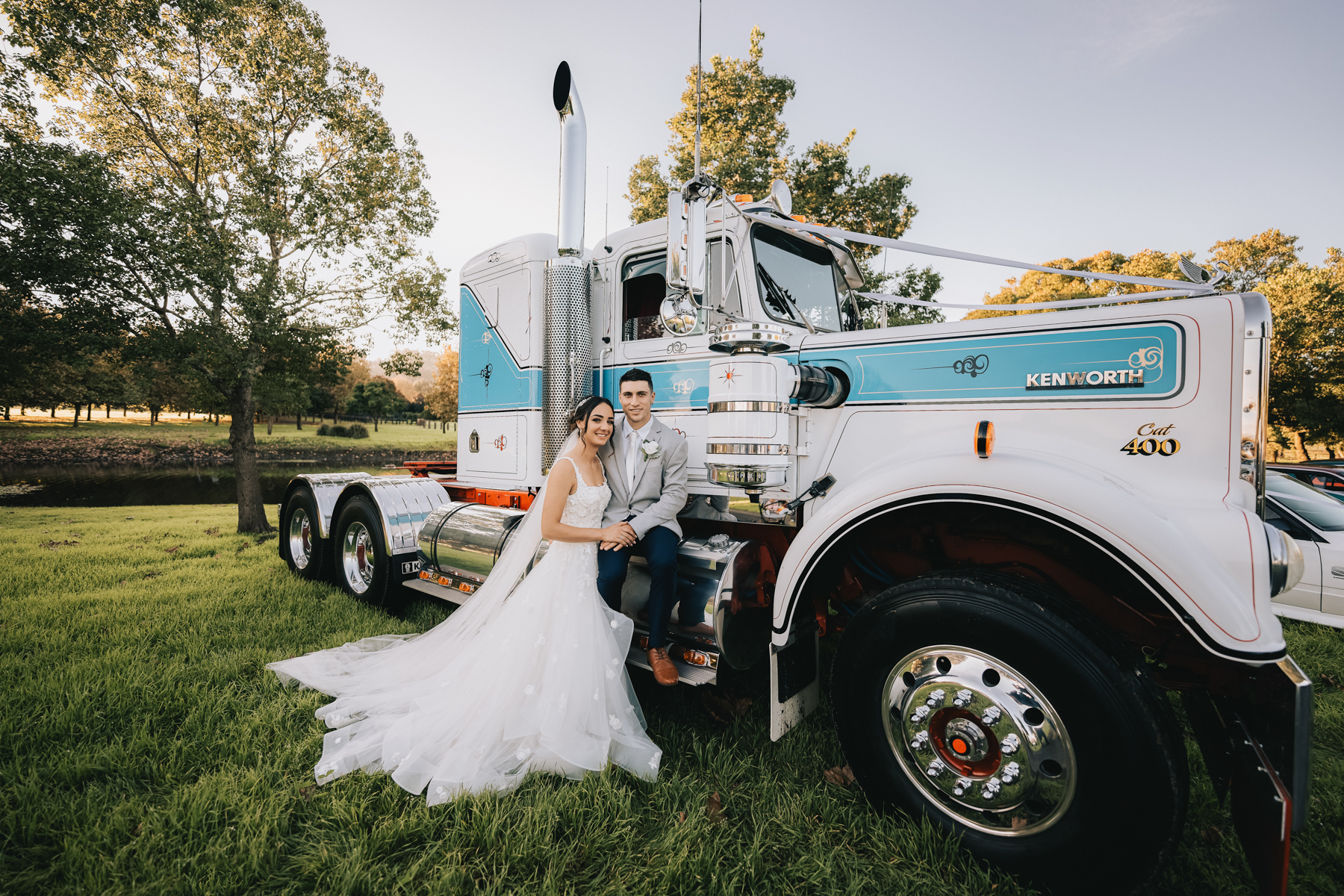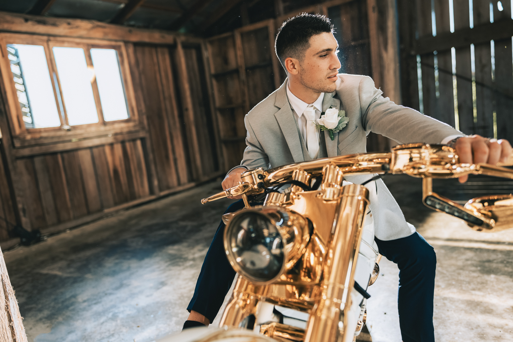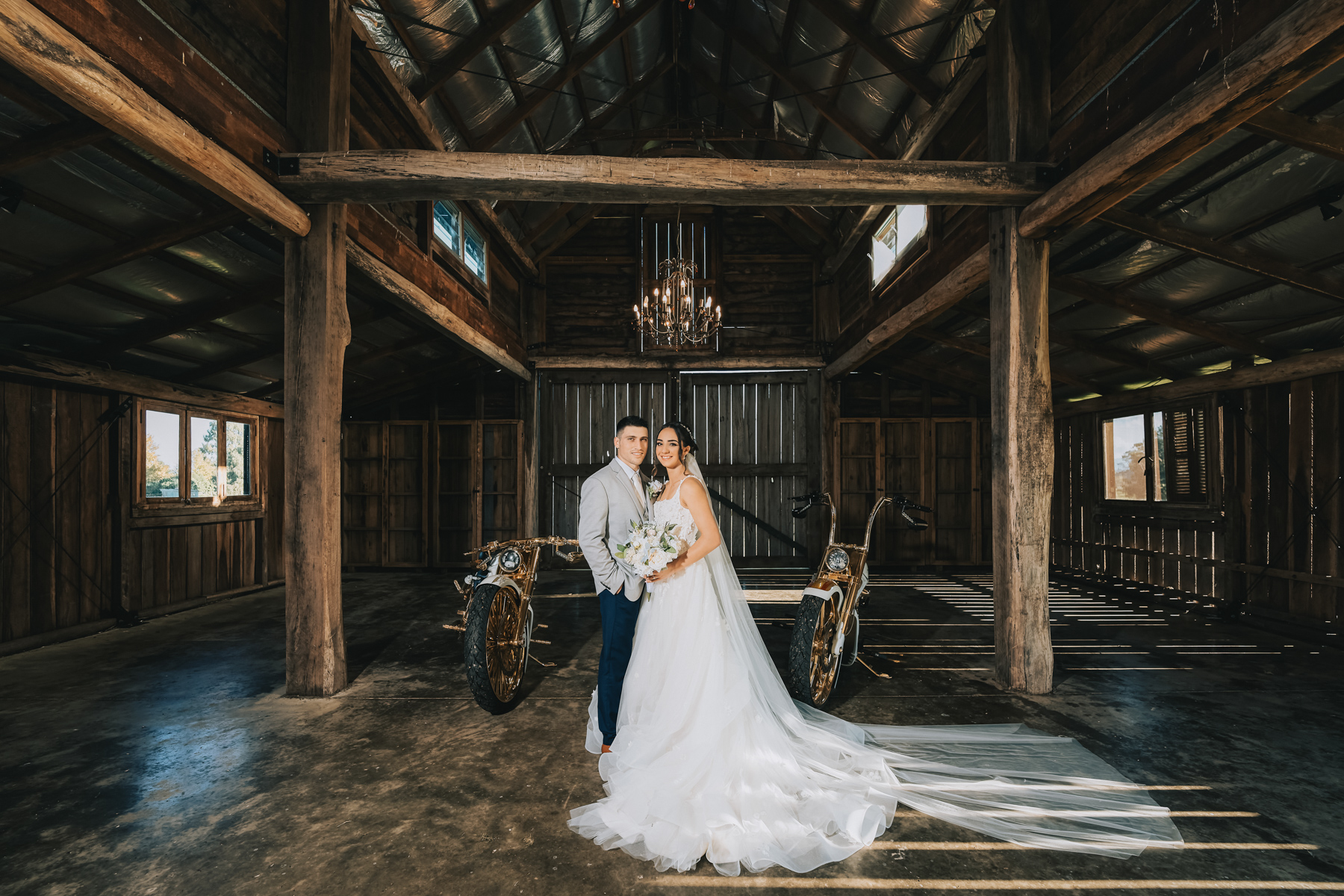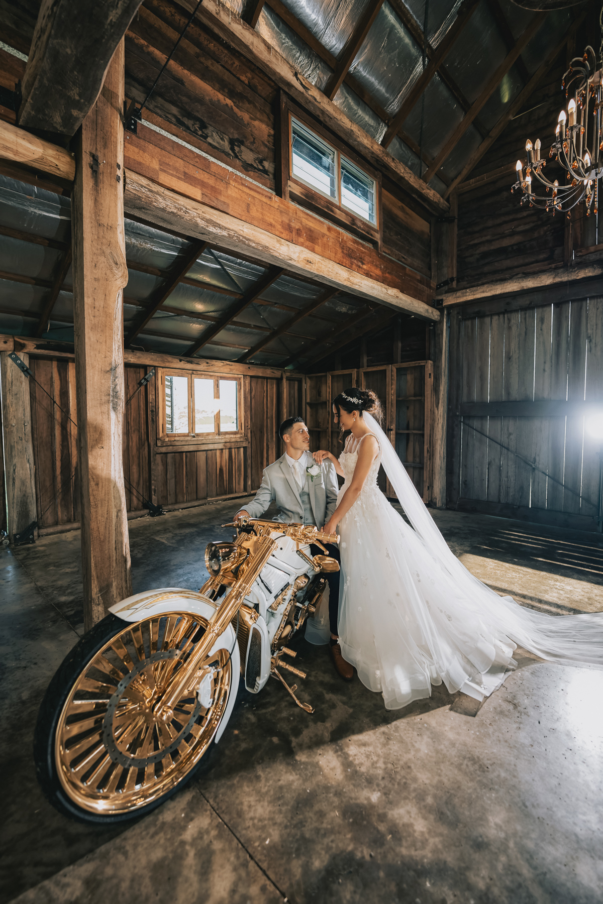 Just when the wedding photographer thought he had seen it all! These matching white and chrome motorcycles were really quite something.