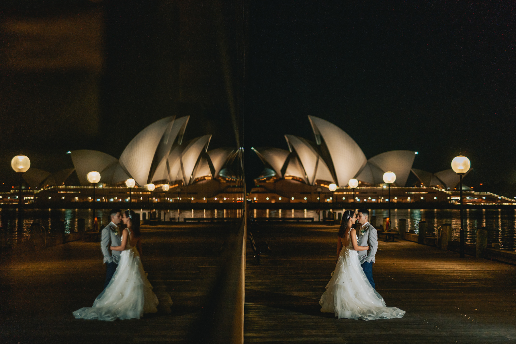 And a final set of images against the backdrop of the Sydney Opera House. We like the candle like colour tone, we like the symmetry, we especially like the sense of togetherness in these wedding photos.