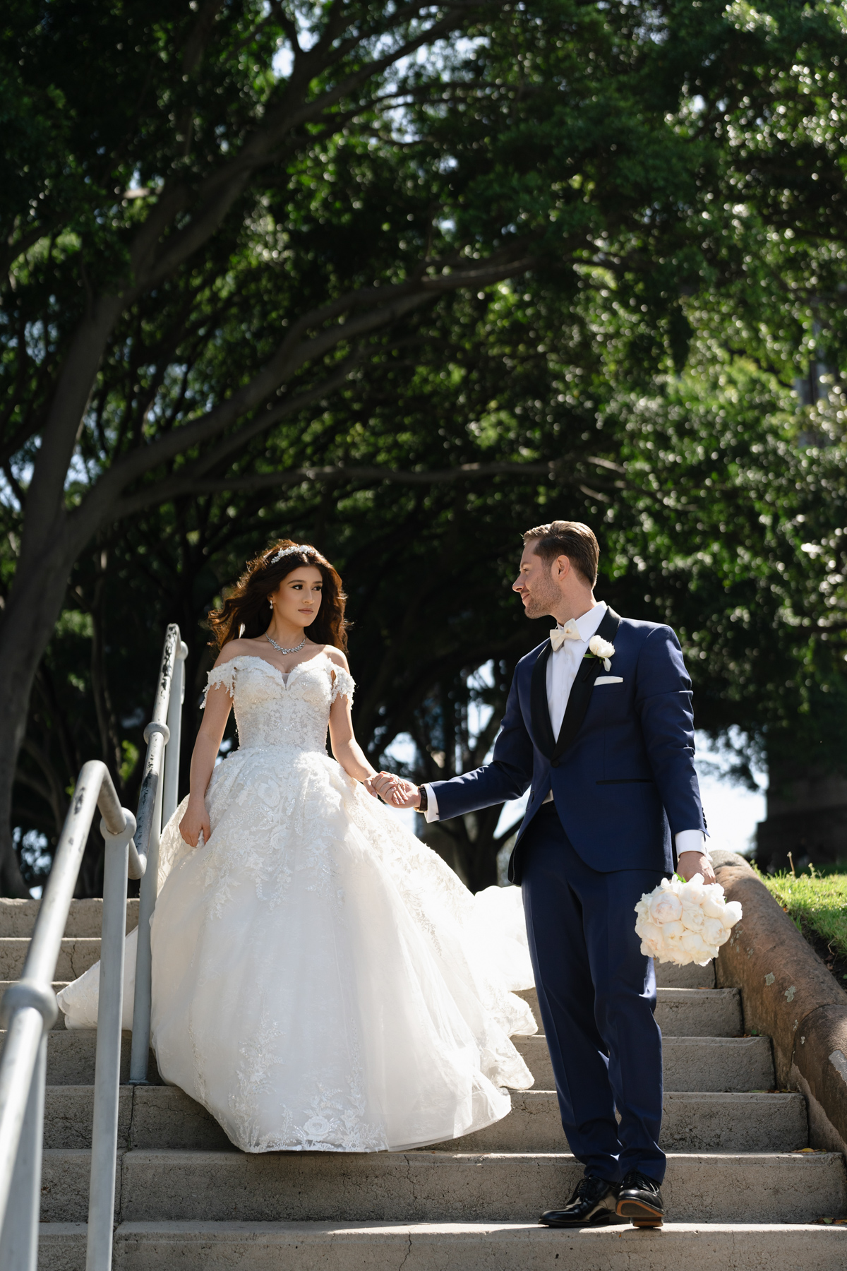 Wedding photos need at least one image of the bride on a staircase. We like to have here with groom as well.