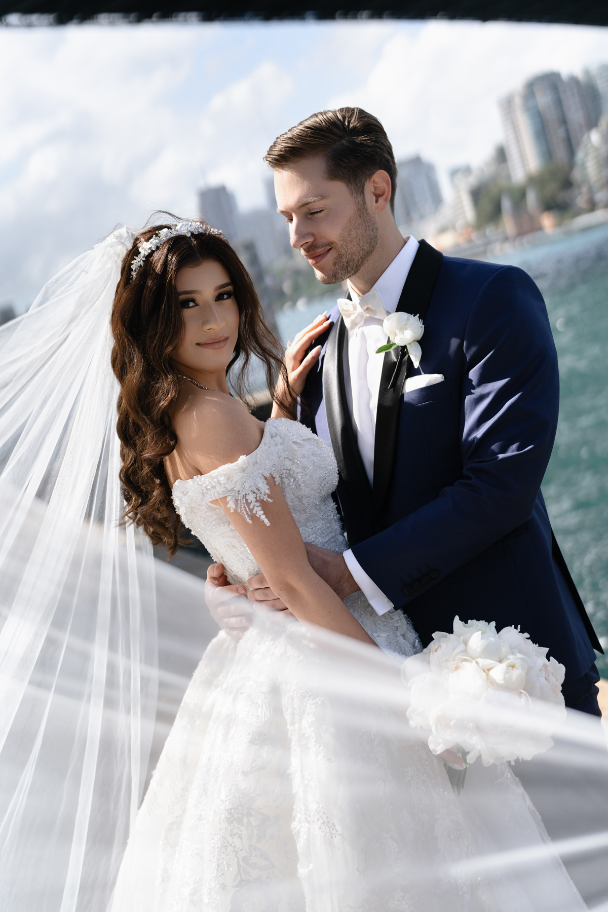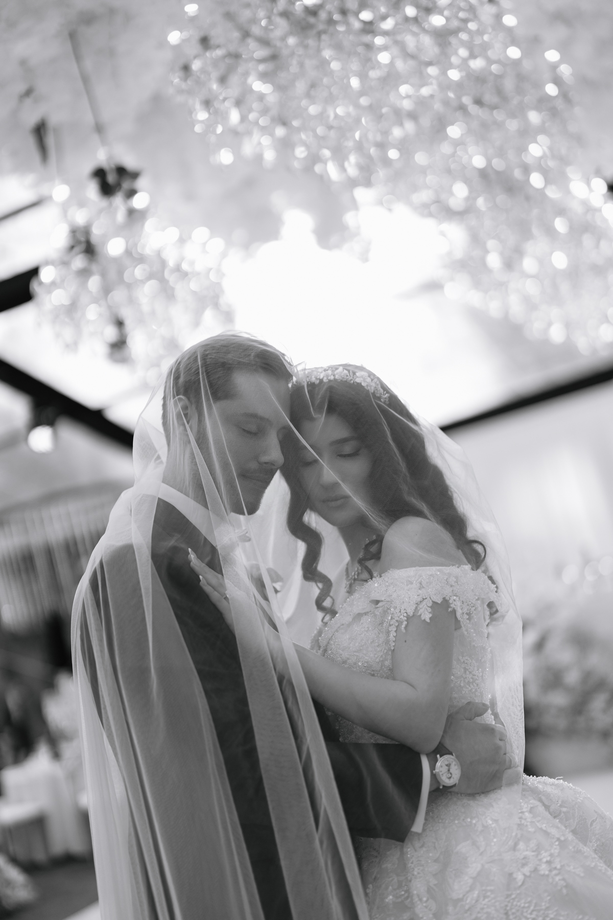 Underneath the veil, together. Not quite private, but an intimate moment.