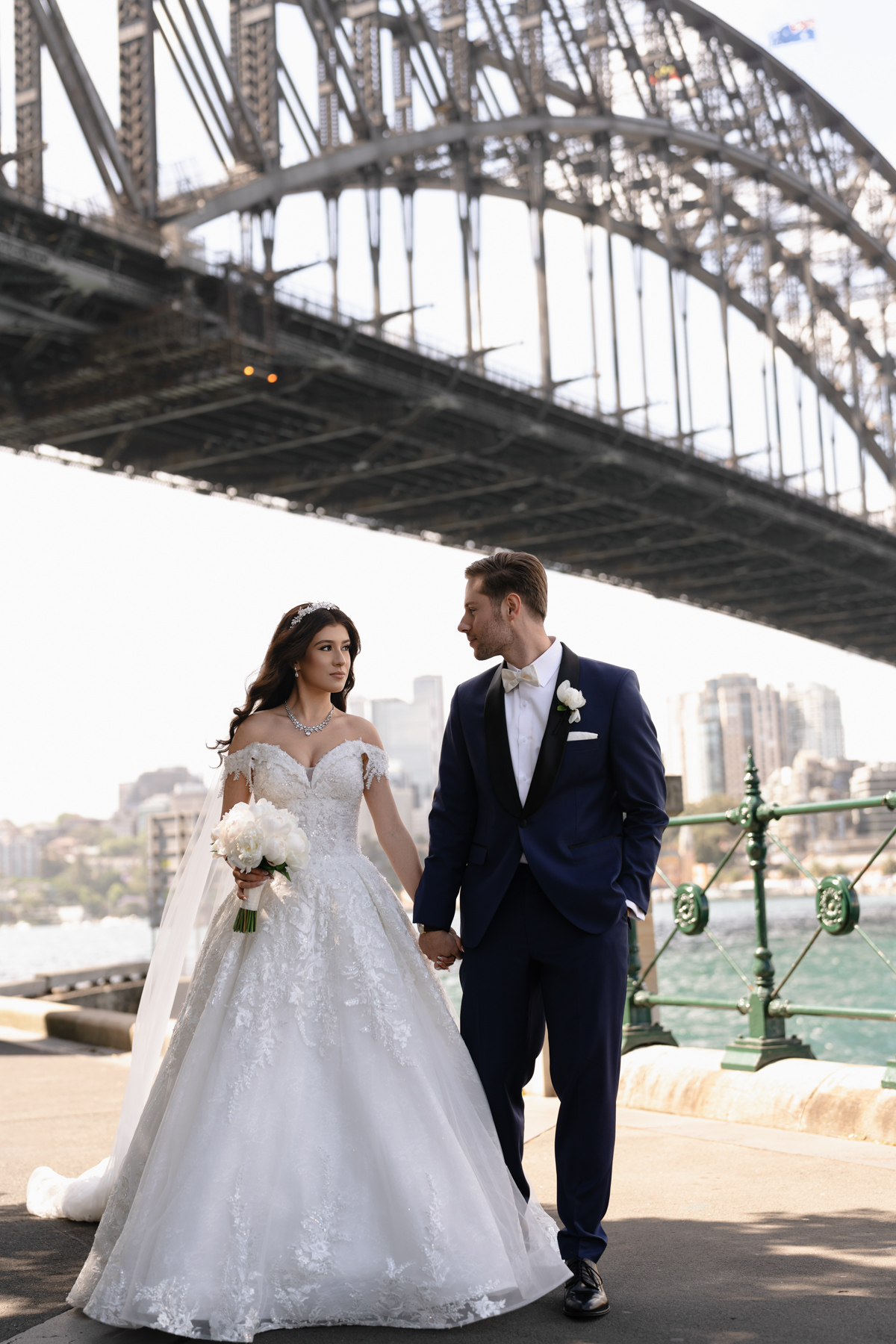 Beneath the Sydney Harbour Bridge, because it seems right to have this landmark in the background.