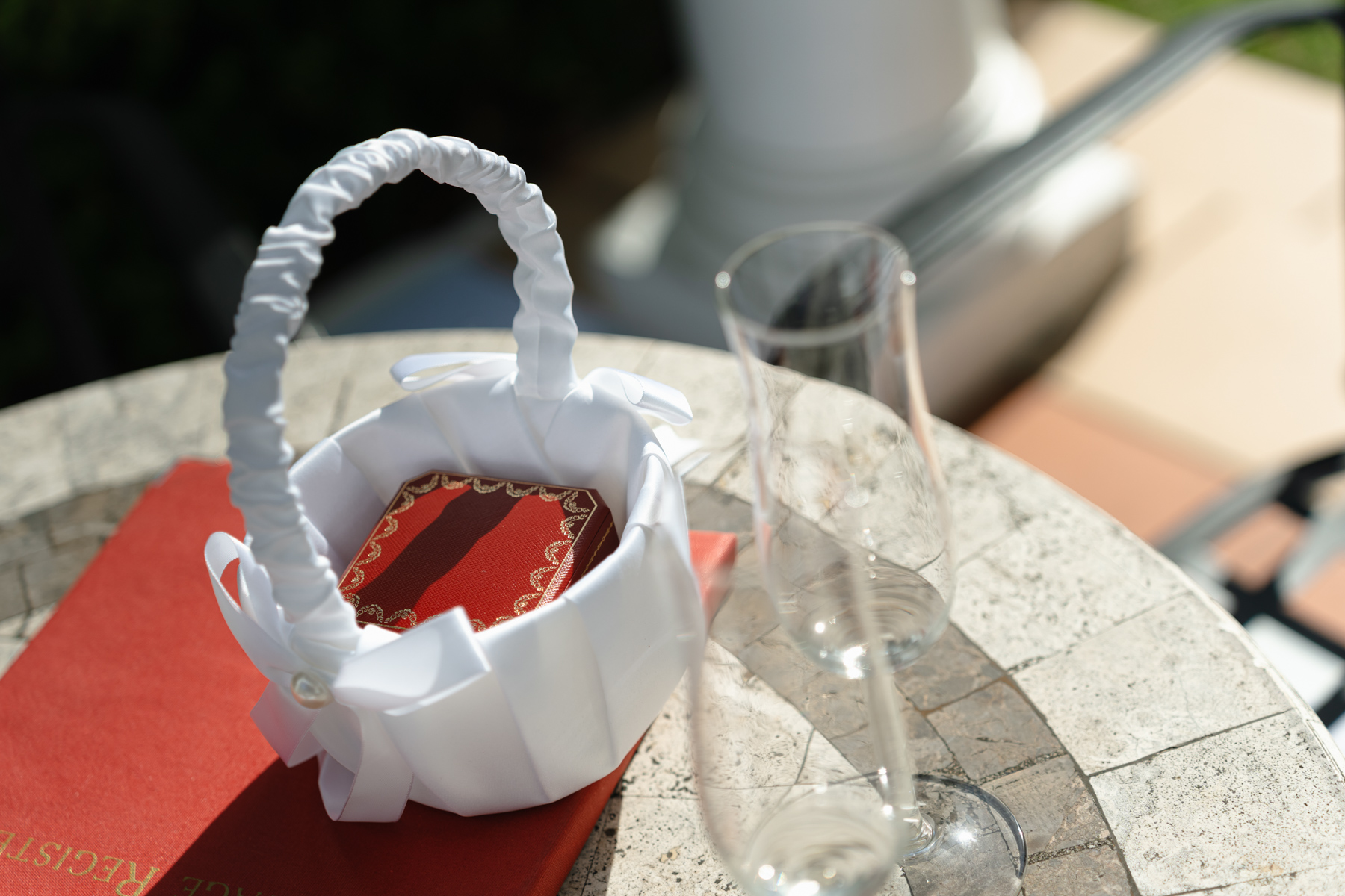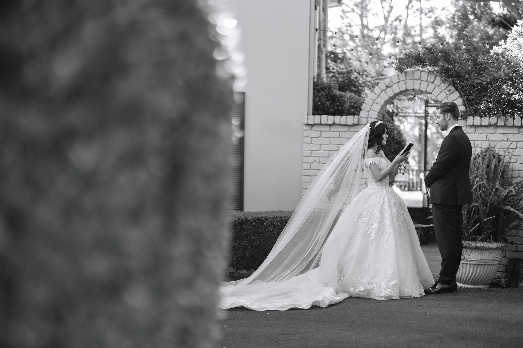 The wedding photographers like to get a little creative with the surrounding sometimes in order to get an unusual and artsy shot.