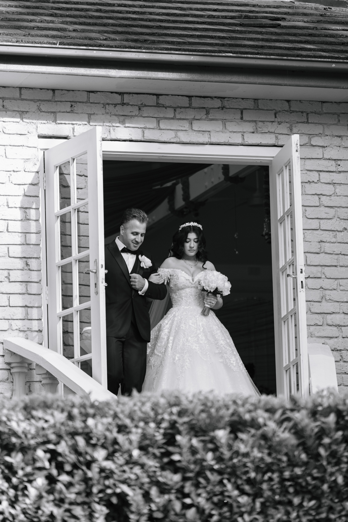 The wedding photographers always look for that image of the bride in just the right window light. We’re spoilt to have those incredible flowers in the picture that match the dress.