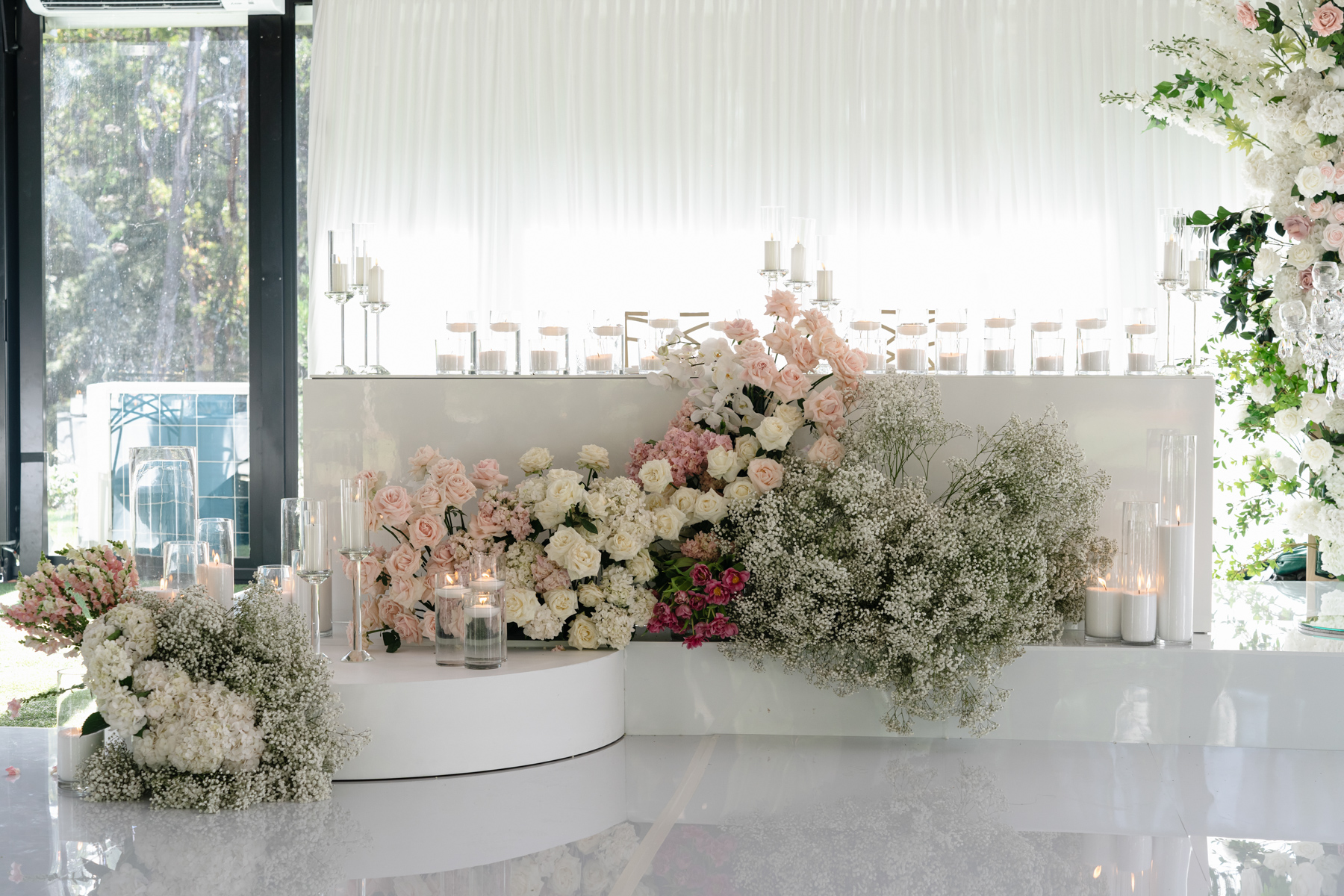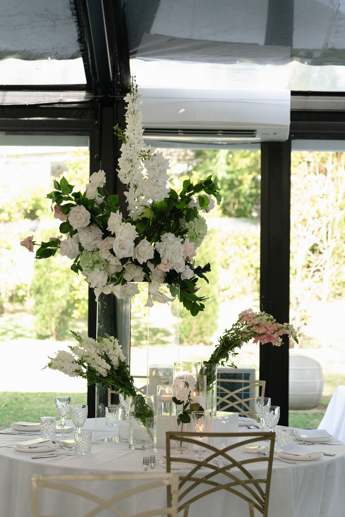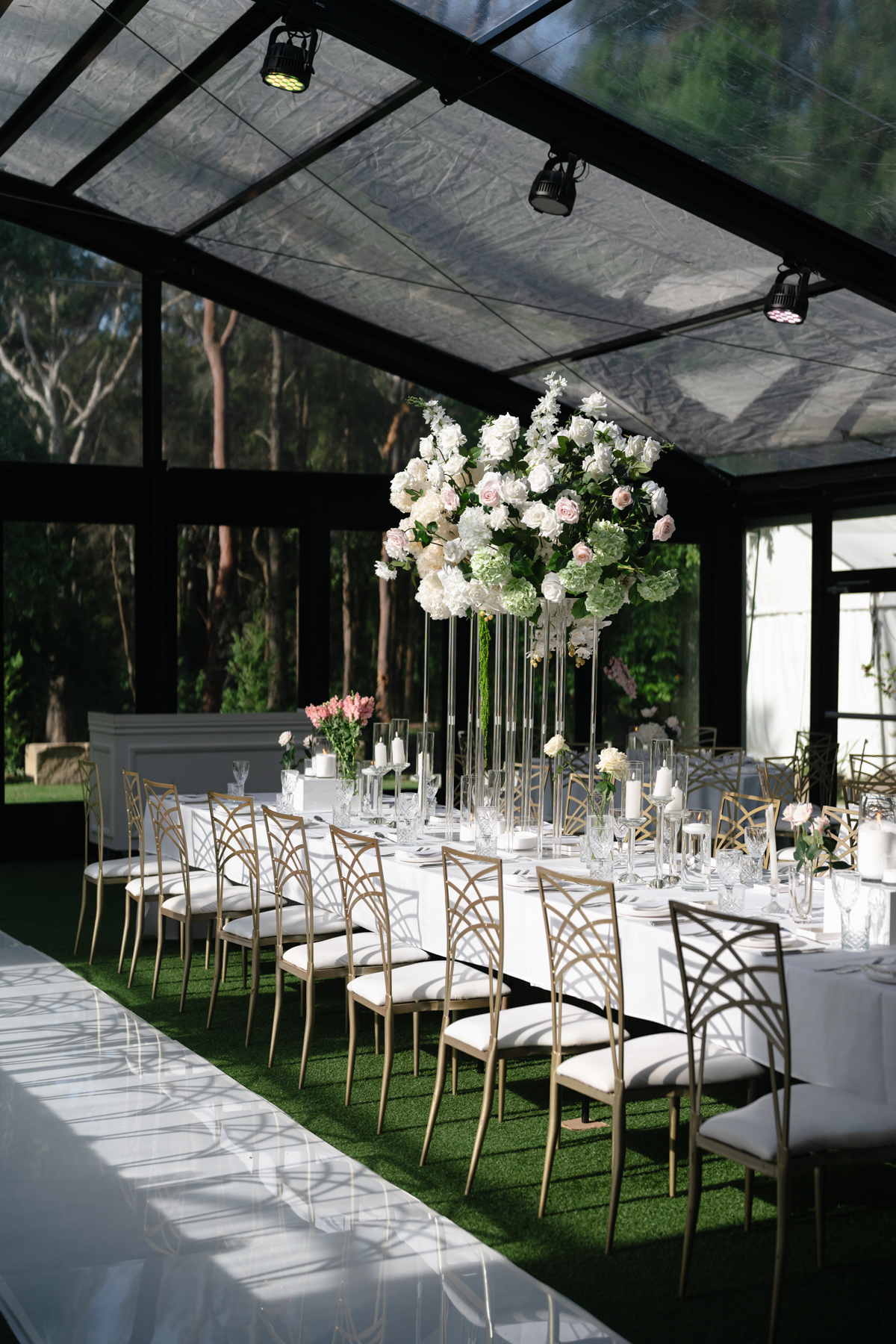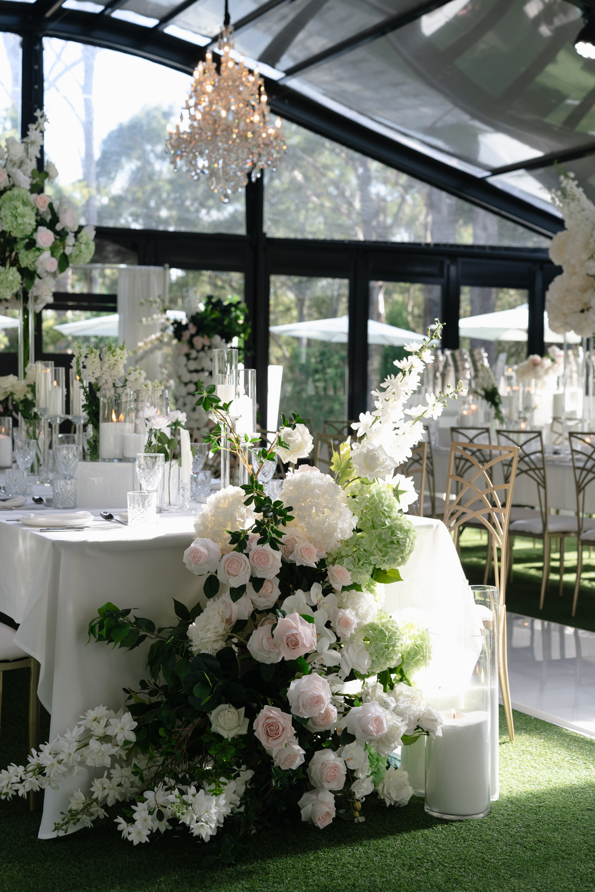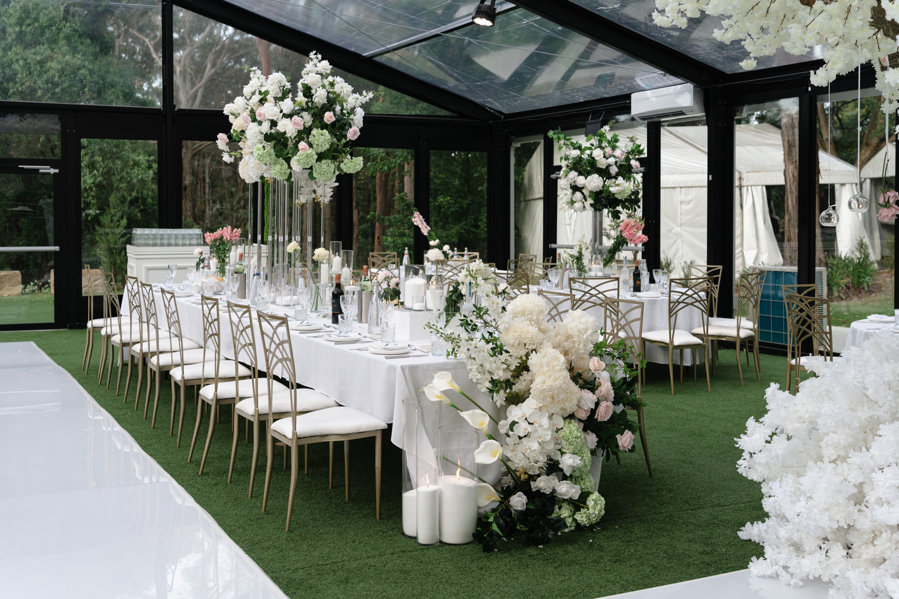 The reception area. Being under a glass roof give the best combination of indoors and outdoor atmosphere. And more of those magnificent flowers.