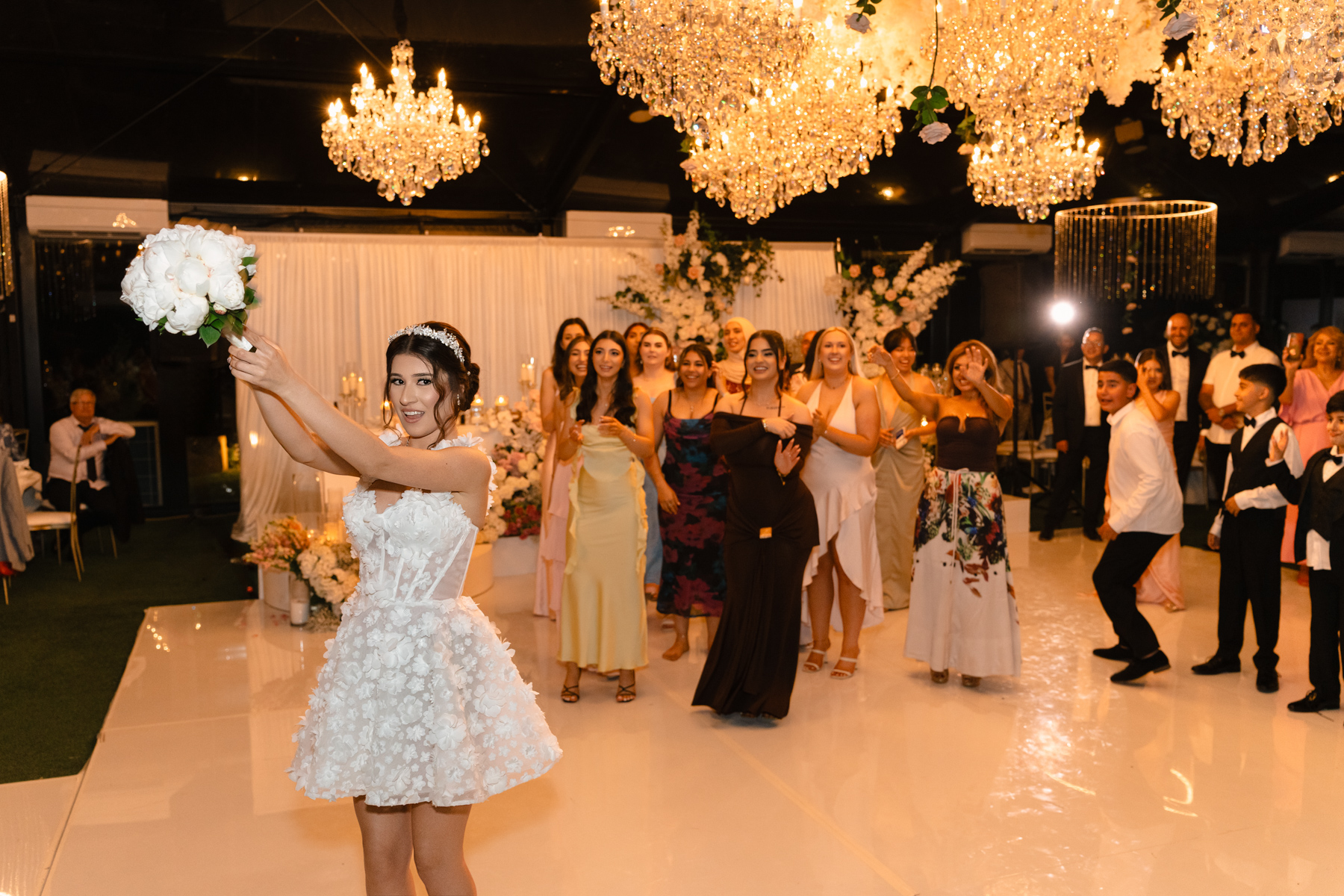 Tossing the bride’s bouquet. Not sure if this predicts the next engagement, but we still like this tradition.